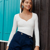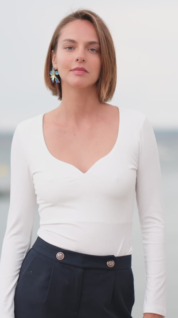 - Escote en forma de corazón