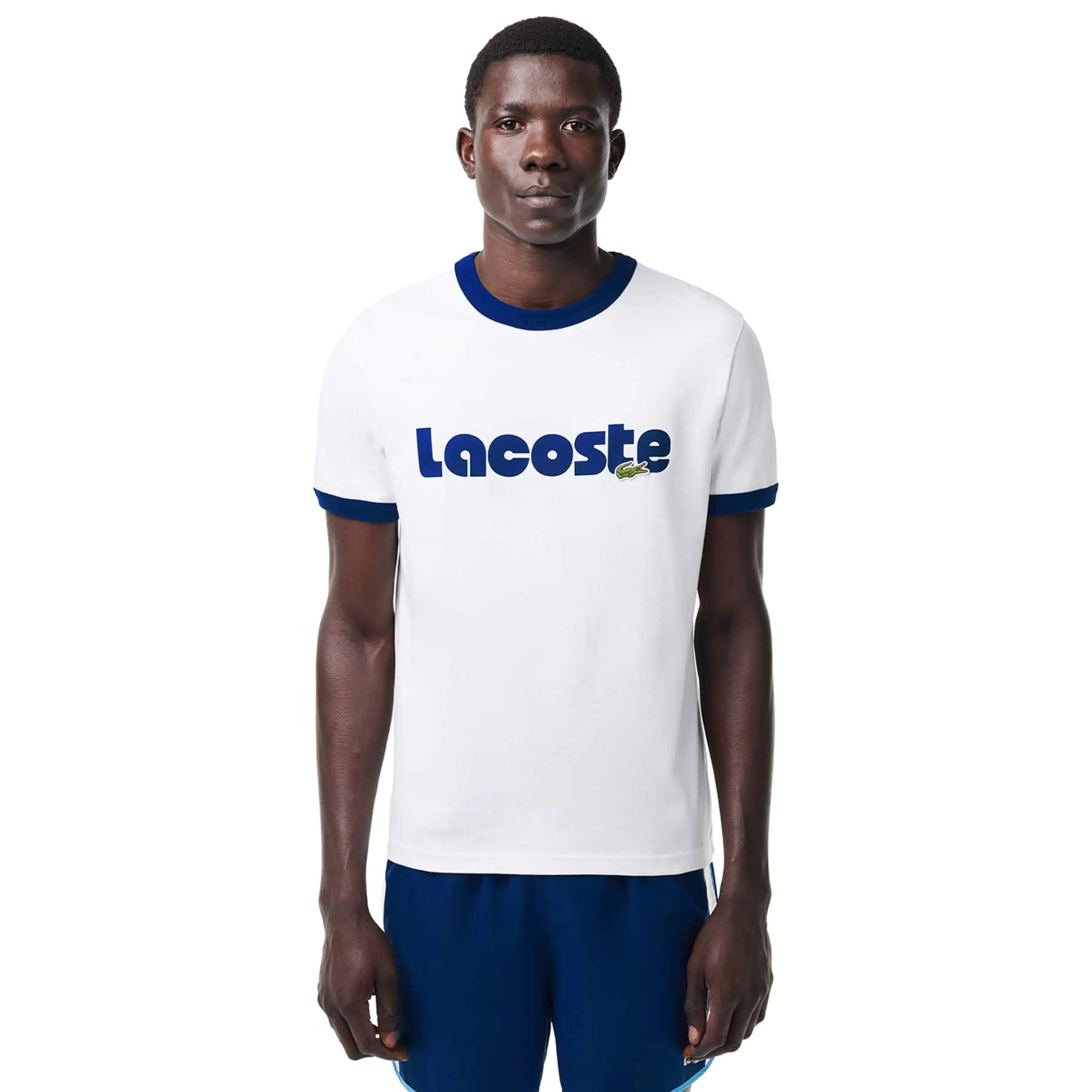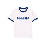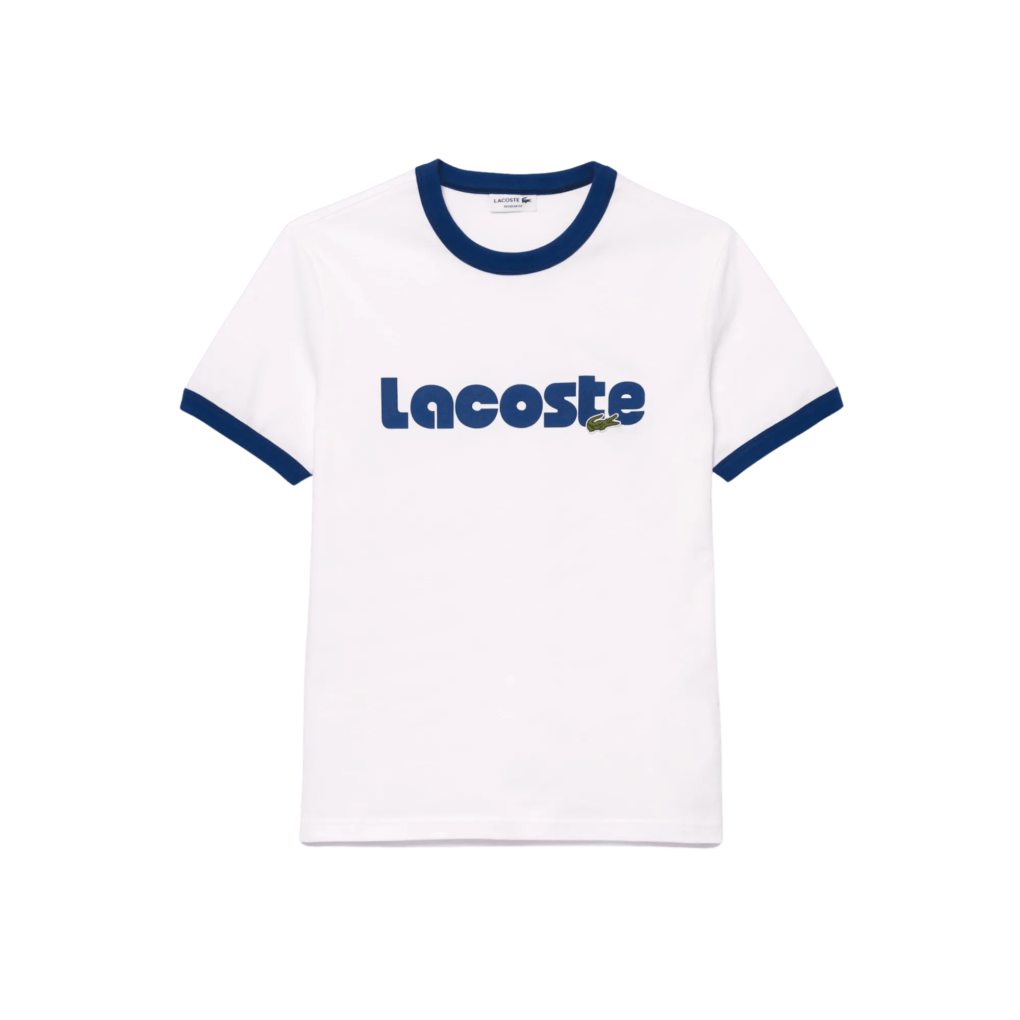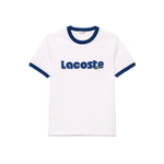 La camiseta Lacoste Retro Logo manga corta presenta un estampado de detalle Lacoste a contraste y está fabricada en punto de algodón ecológico. Con un corte regular y recto, cuenta con cuello redondo, estampado pigmentado de Lacoste y el icónico cocodrilo bordado en el pecho.