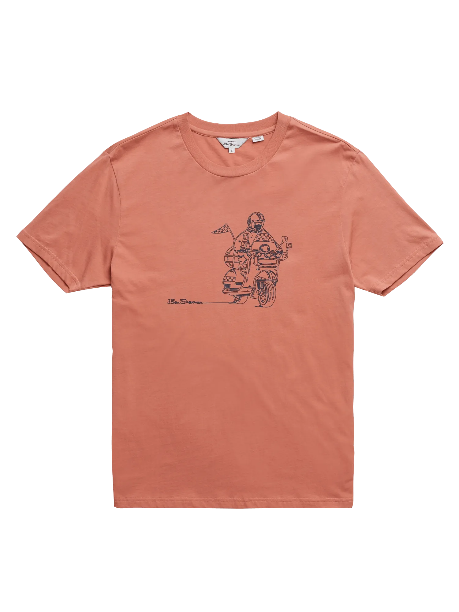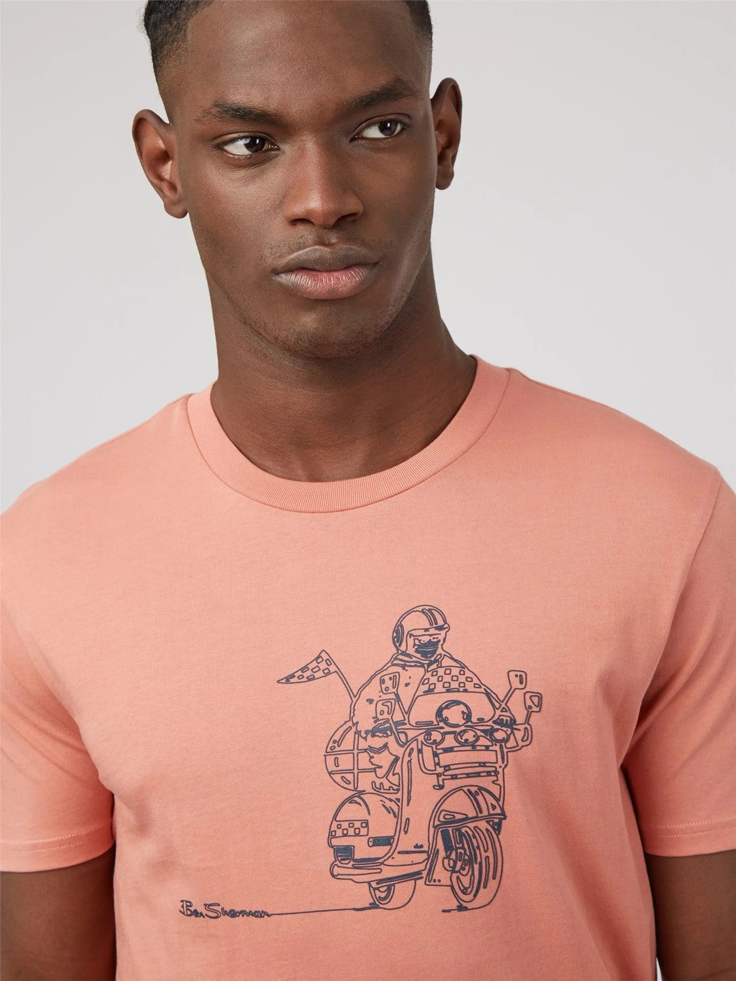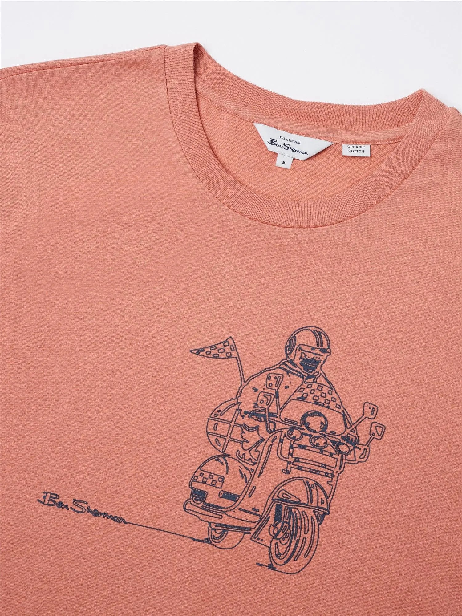 Una camiseta casual clásica para hombre de Ben Sherman, en jersey de algodón orgánico 100% certificado GOTS y cortada en un ajuste regular. Con un guiño a nuestra herencia, esta camiseta presenta un scooter con estampado en el pecho del ciclista.