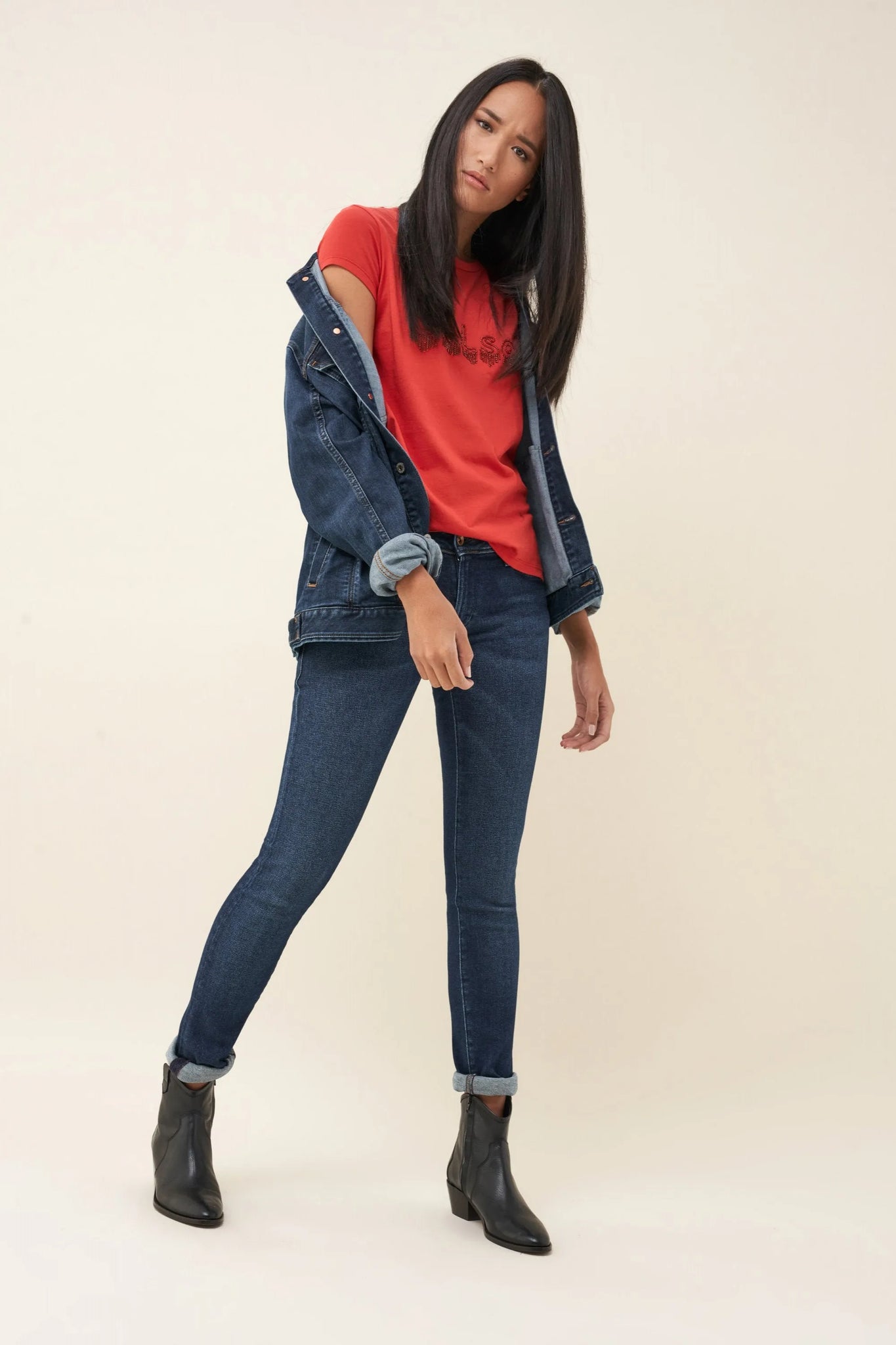 La modelo mide 178 cm y lleva la talla S.