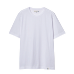Camiseta de corte holgado (relaxed fit) confeccionada en jersey ligero de algodón Pima orgánico, conocida mundialmente por su suavidad y durabilidad. Presenta cuello redondo clásico, inserciones triangulares bajo las axilas para mayor comodidad de movimiento y costuras de acabado tipo “baseball”.