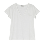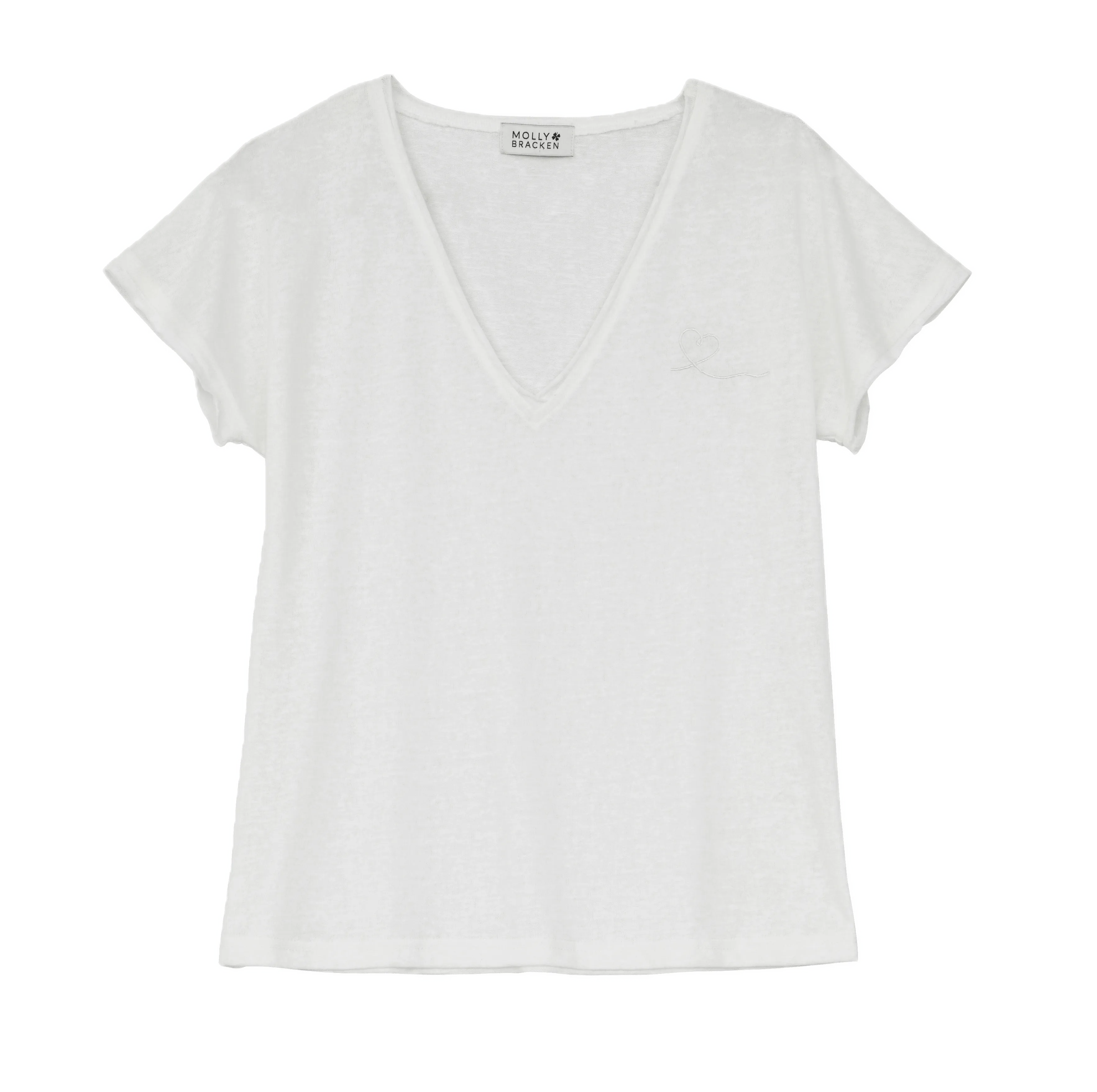 Camiseta blanca Molly Bracken de manga corta con cuello pico y bordado de corazón al tono: 45cm Talla S