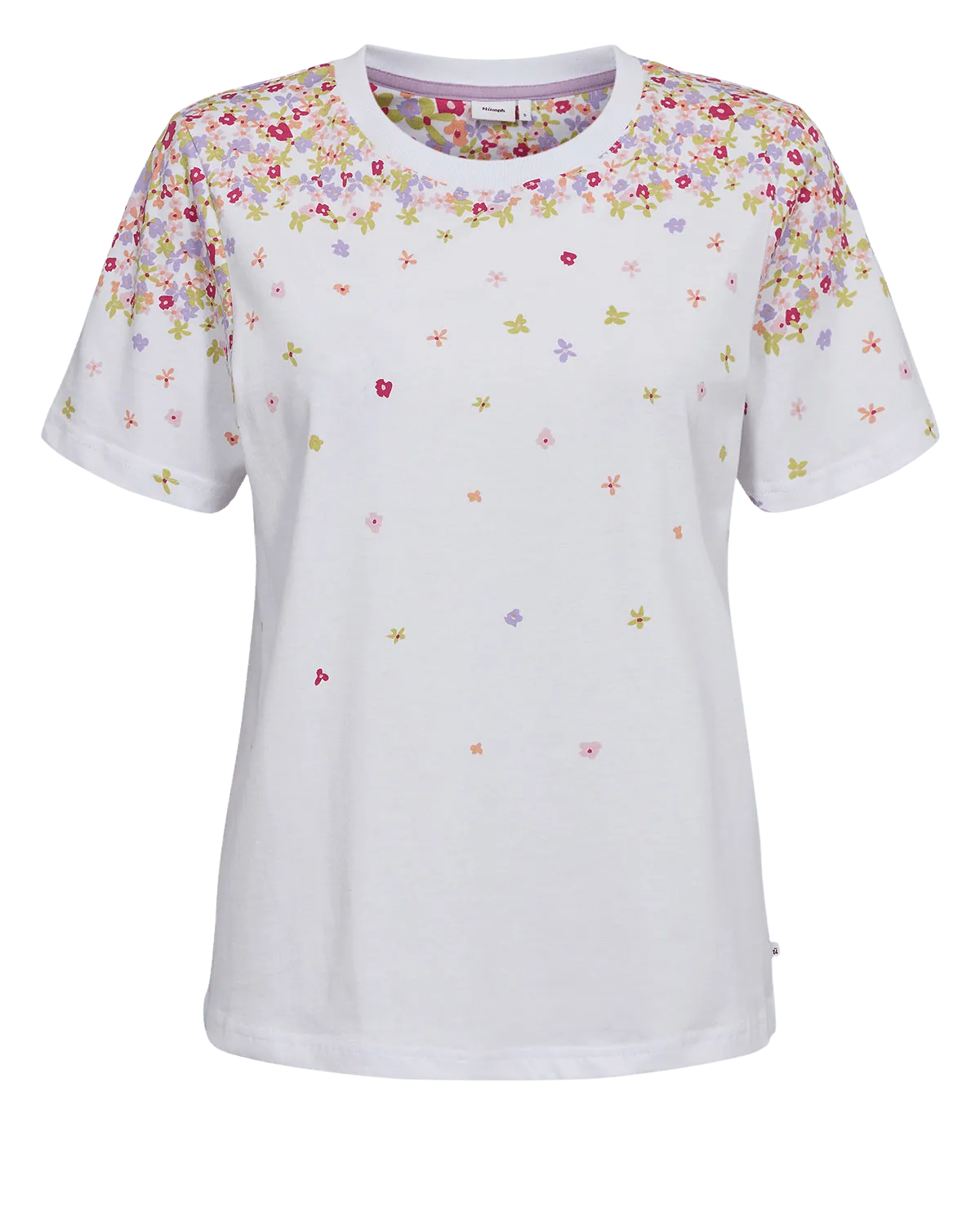 Camiseta de manga corta de la marca Nümph con estampado de flores de colores.