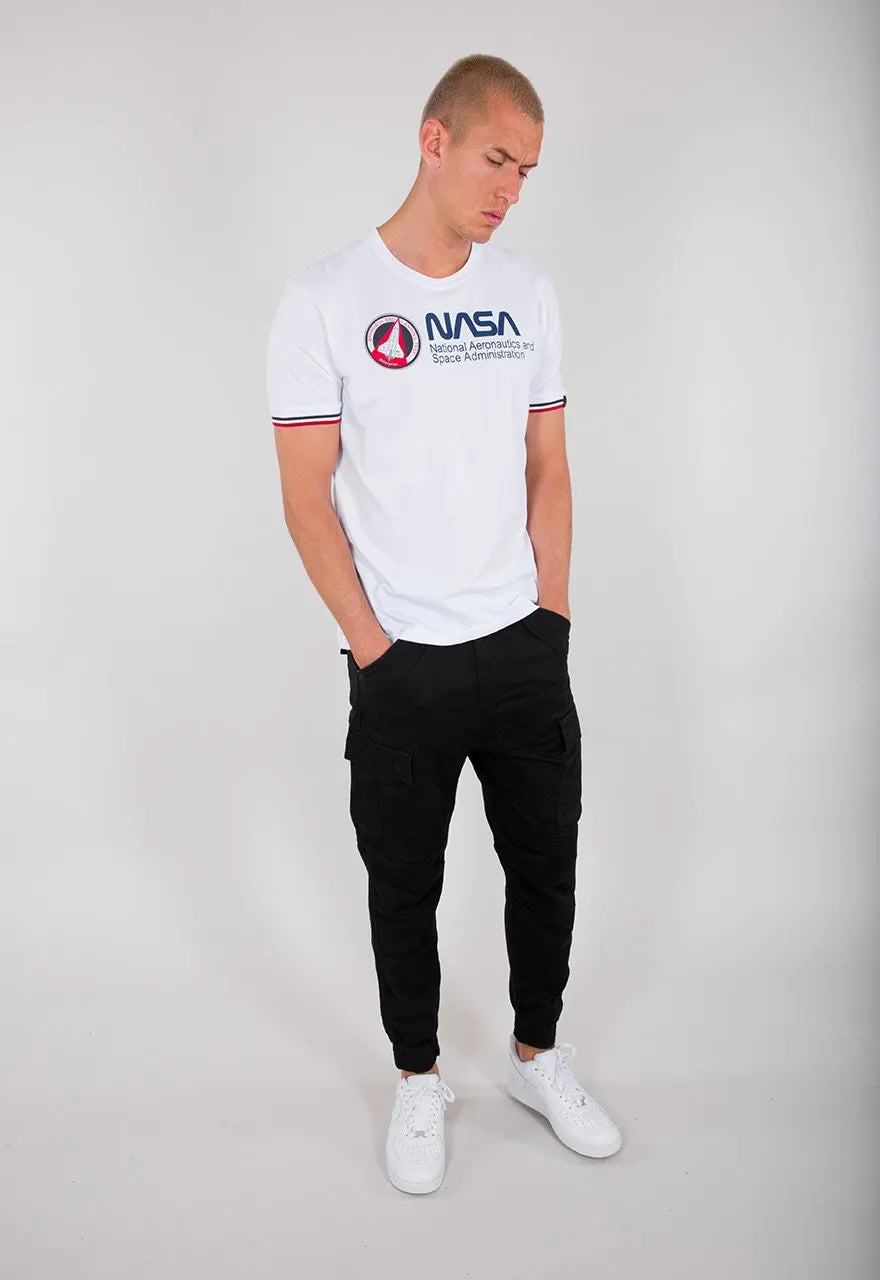 El estampado NASA en el pecho y las costuras en contraste de color al final de las mangas le dan a esta camiseta un ligero look retro, que se puede combinar perfectamente con uno de nuestros pantalones cargo.