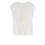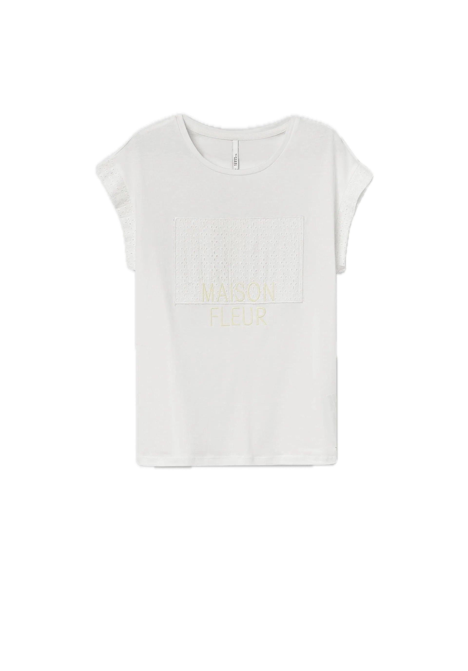 Camiseta de cuello redondo y manga corta. Bordado frontal con texto y en la manga.