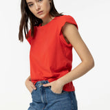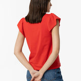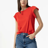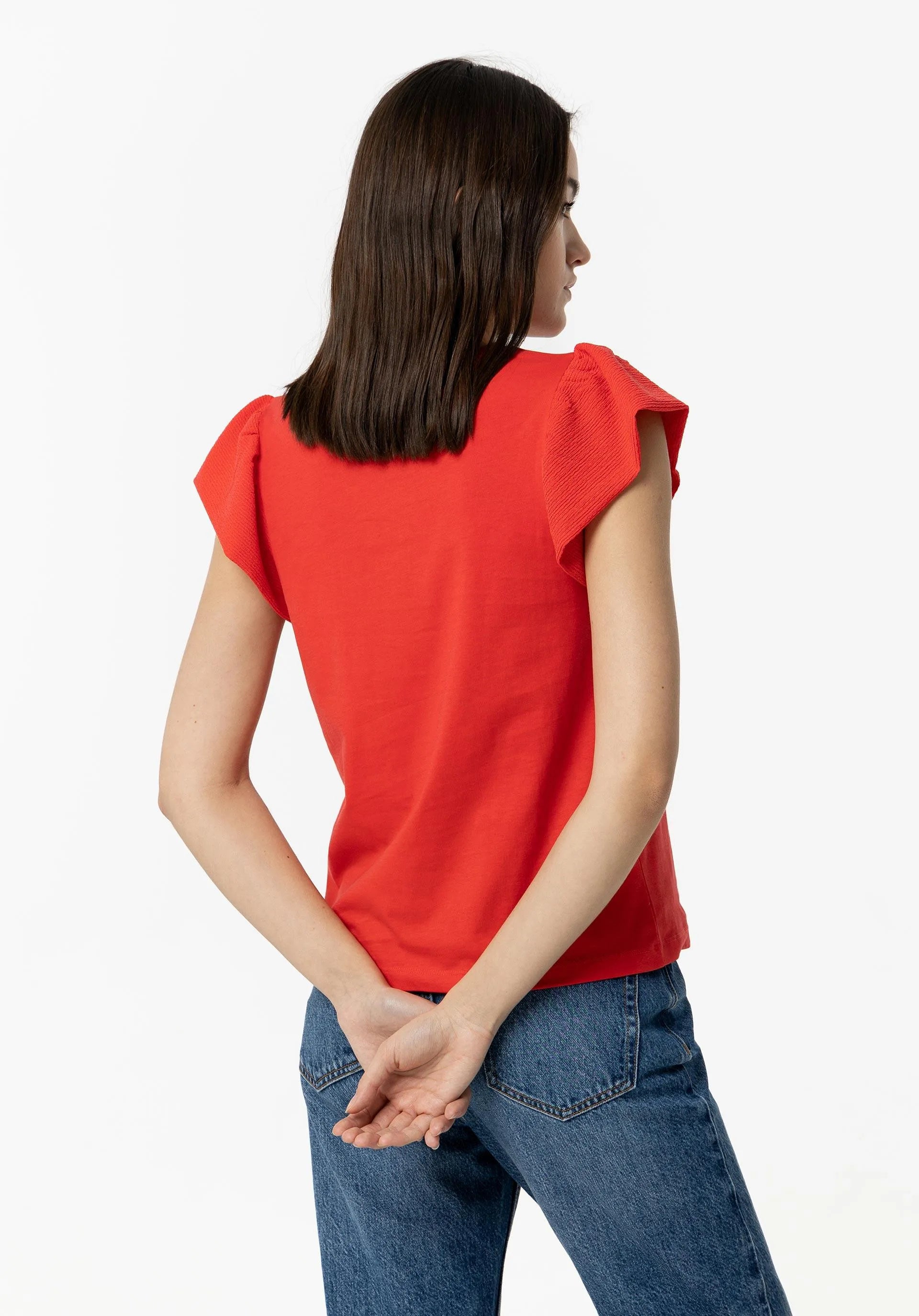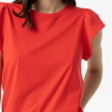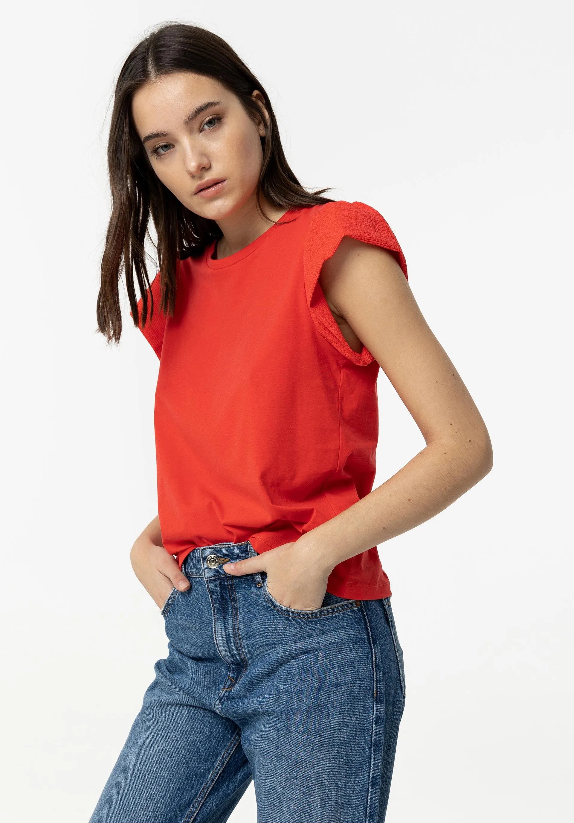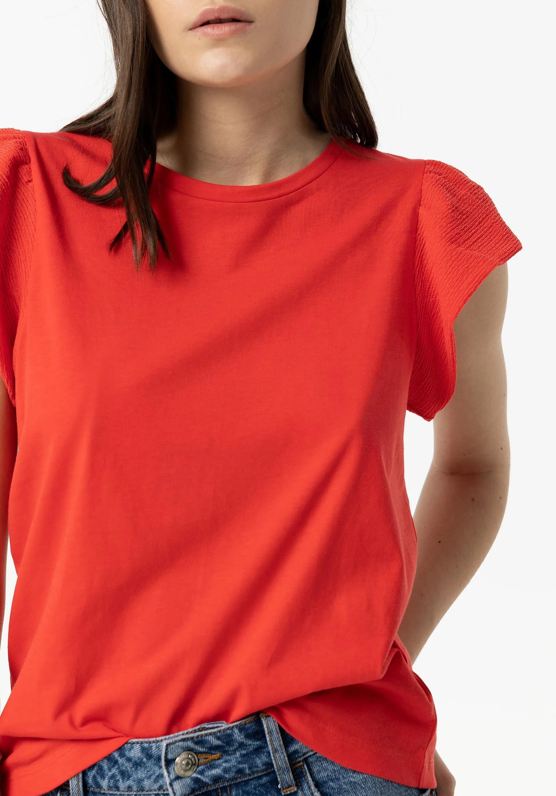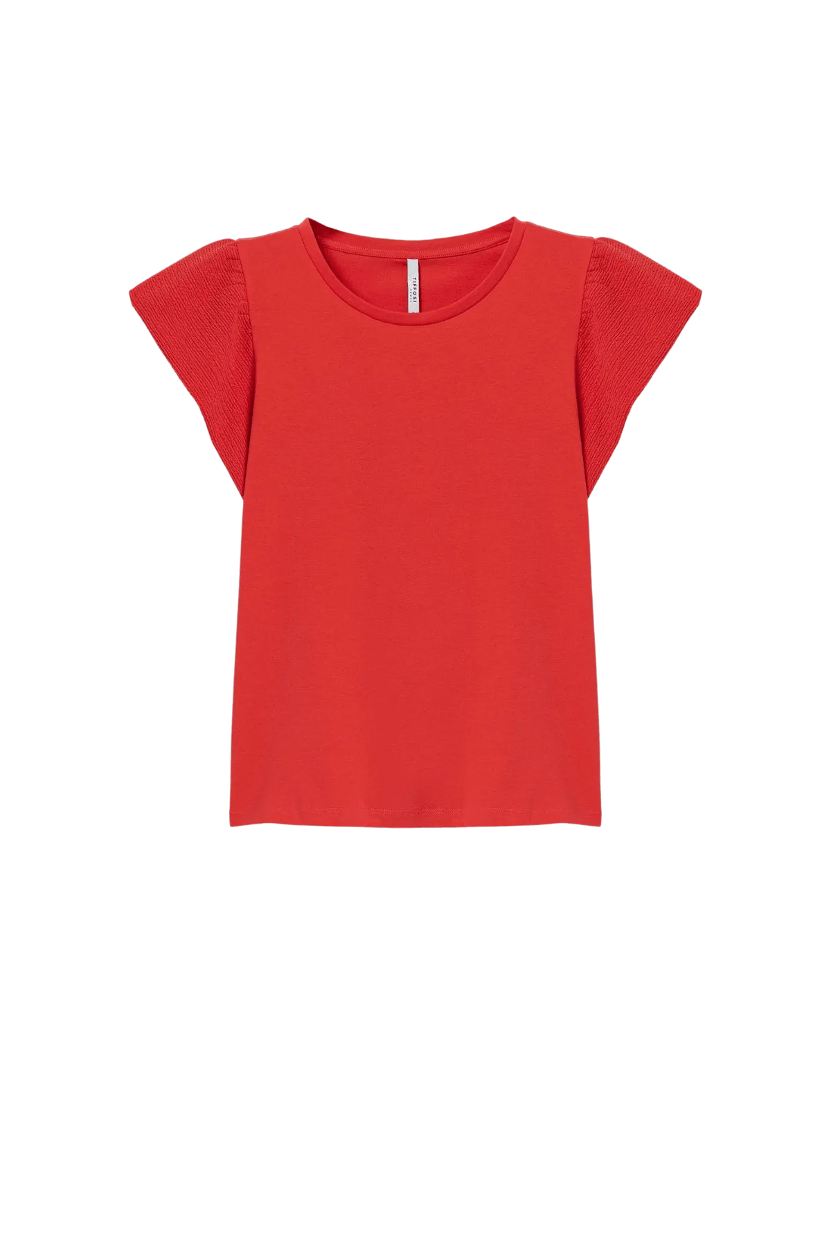Camiseta de cuello redondo y manga corta con efecto arrugado.