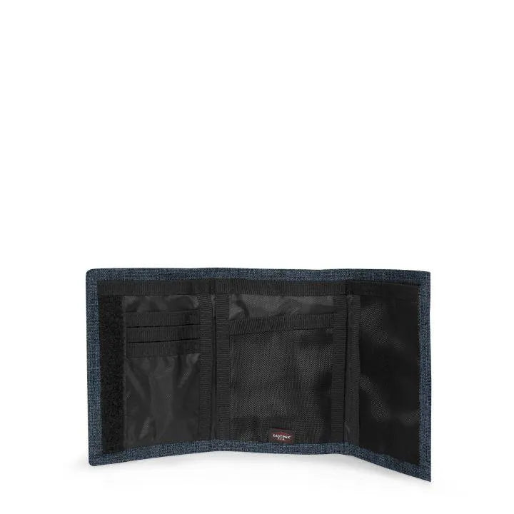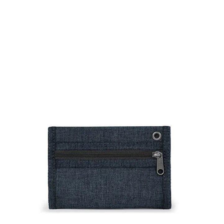 - Billetera de tres pliegues en Triple Denim, con anilla para llevar tus llaves