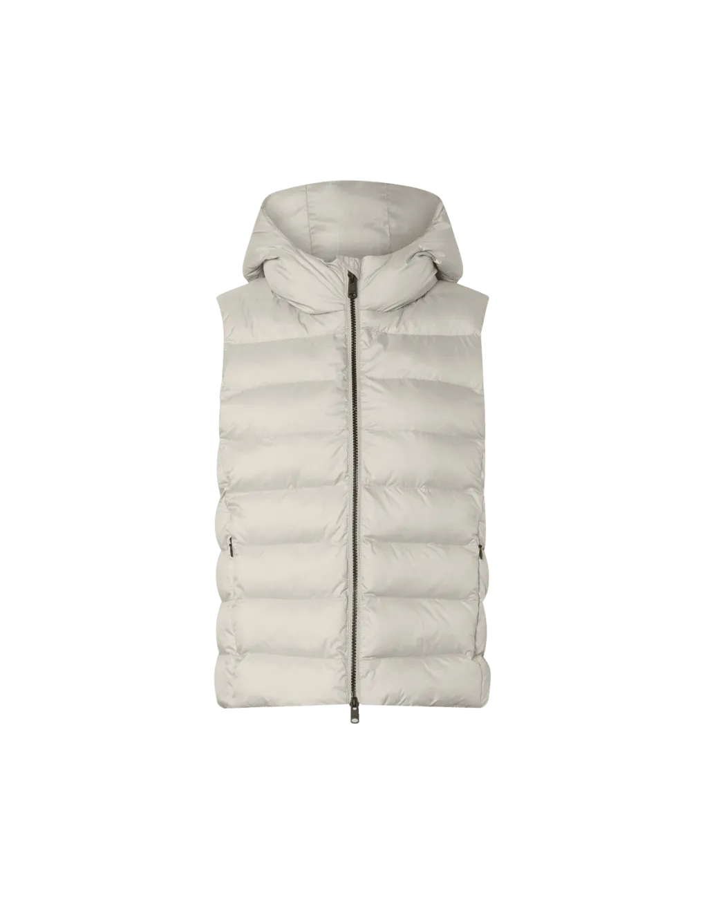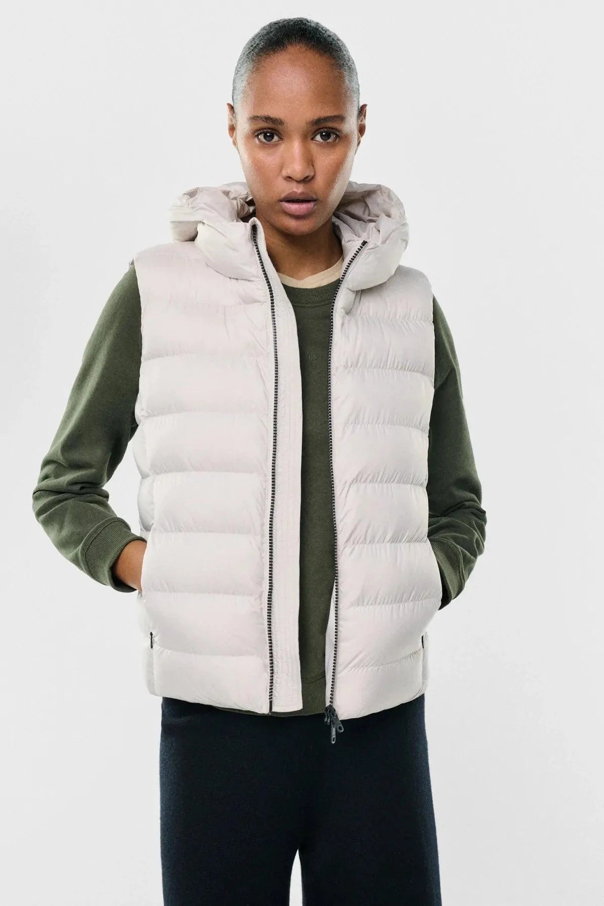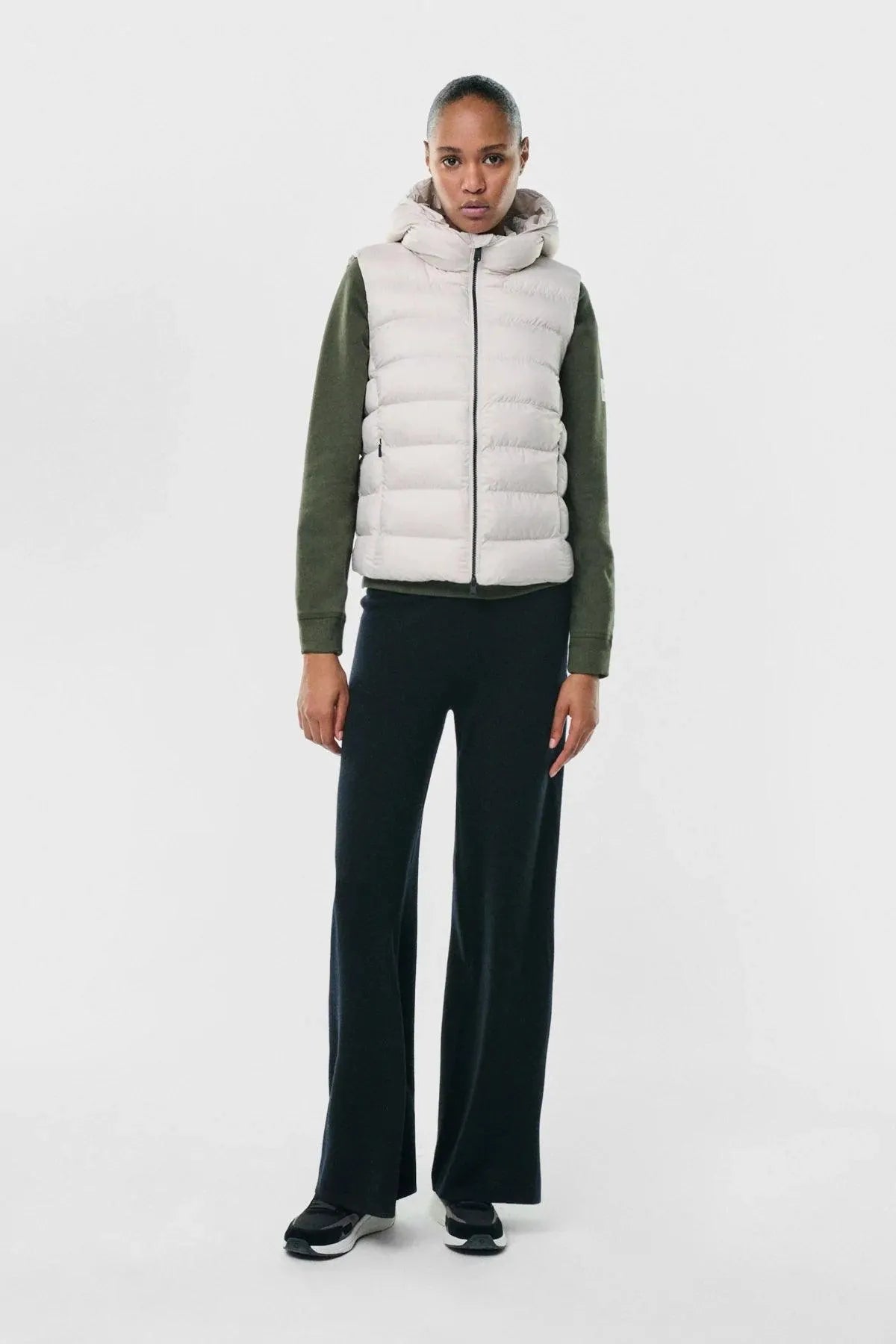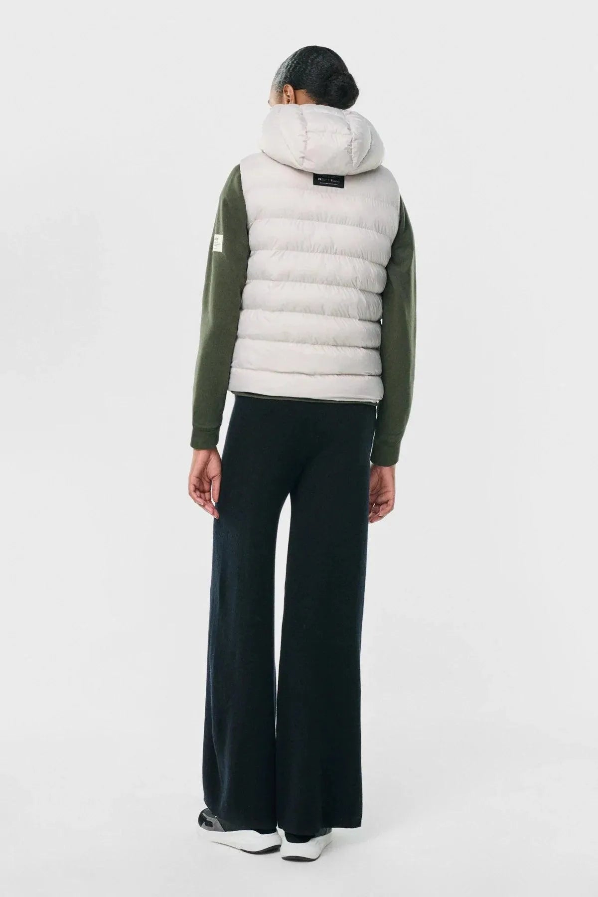 El chaleco Mount tiene un relleno vegano, 100% Poliéster reciclado, evitando el uso de pluma y plumón. En ECOALF nos preocupa el bienestar animal y por ello estamos certificados con PETA-Approved Vegan (People for the Ethical Treatment of Animals). Repelente al agua y libre de PFC.