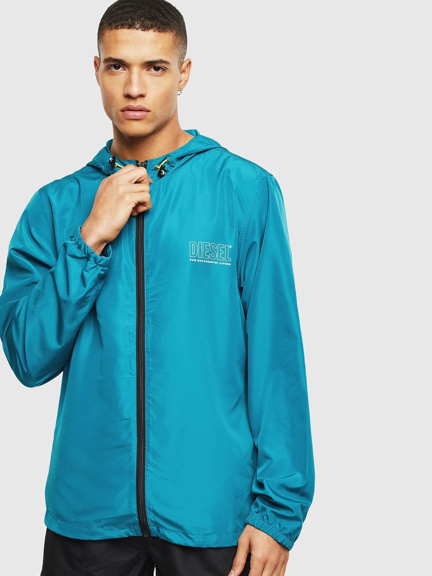 Chaqueta cortaviento con capucha en ligero poliéster con el logotipo de Diesel contorneado estampado en el pecho y la espalda. Se pliega y se guarda en una bolsa con cremallera.