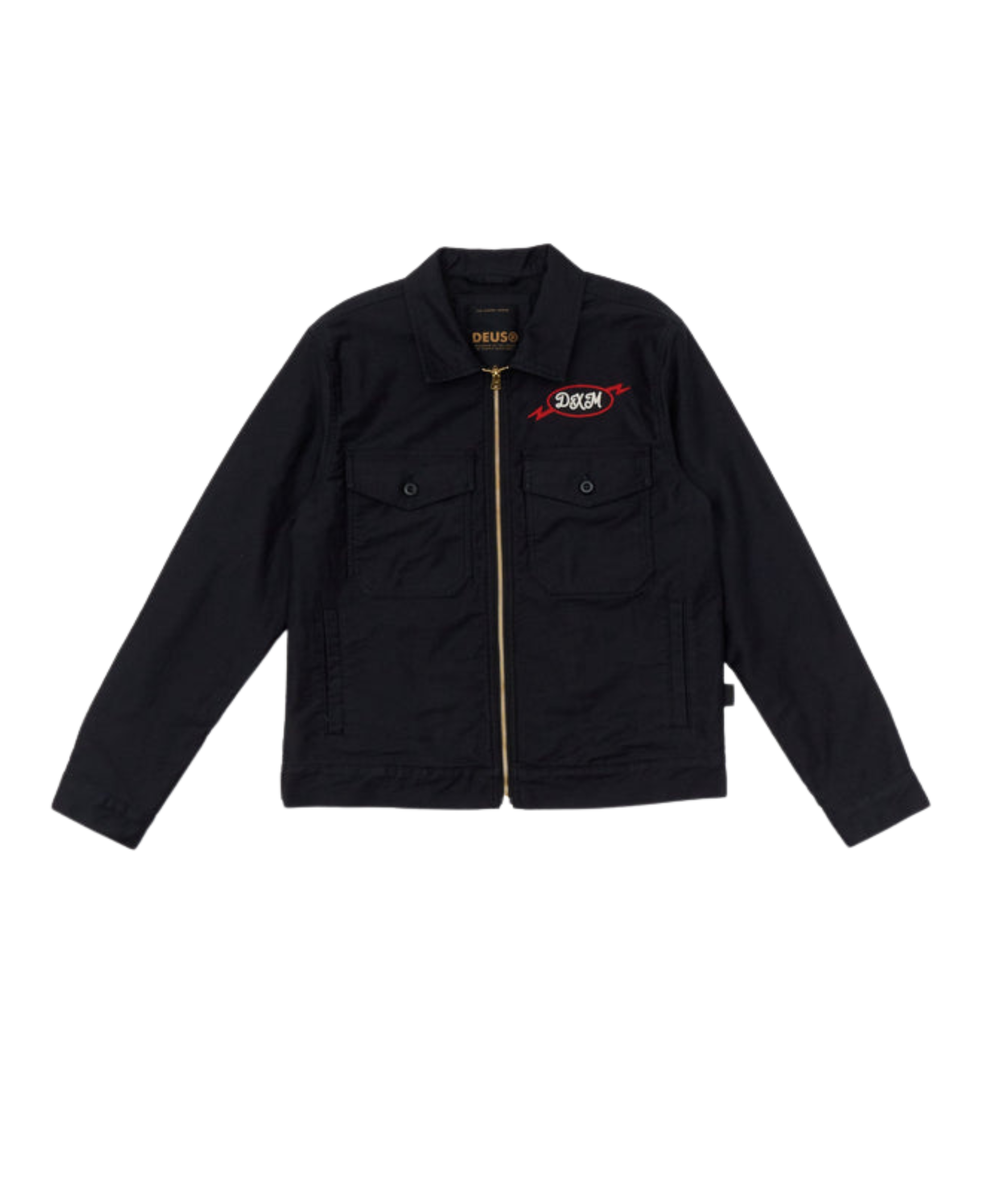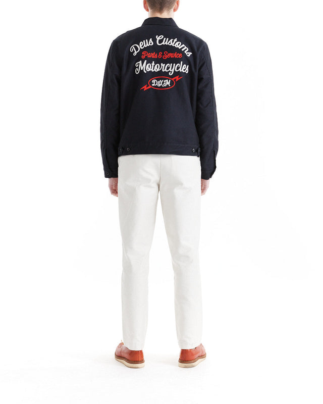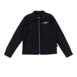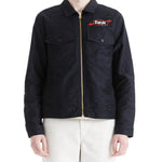 Chaqueta de corte relajado con arte bordado en el pecho y la espalda, bolsillos de parche en el pecho y bolsillos ribeteados inferiores, cierre frontal con cremallera, exterior de mezcla de satén de algodón y nailon y forro de mezcla de poliéster y viscosa con lavado a máquina.