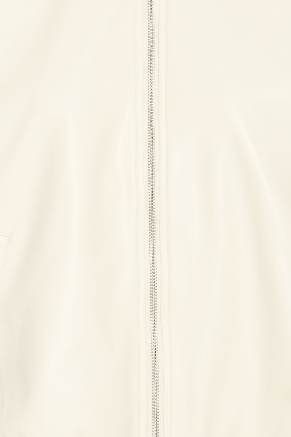 Confeccionada en 100 % poliéster con acabado tipo polipiel, cuenta con forro interior para mayor confort y una caída estructurada pero ligera. Una bomber práctica y actual, pensada para integrarse con naturalidad en el armario de temporada de verano.
