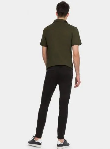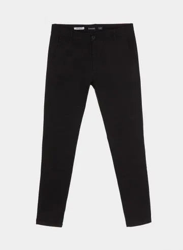 Pantalones de corte chino y pierna pitillo con largo tobillero.