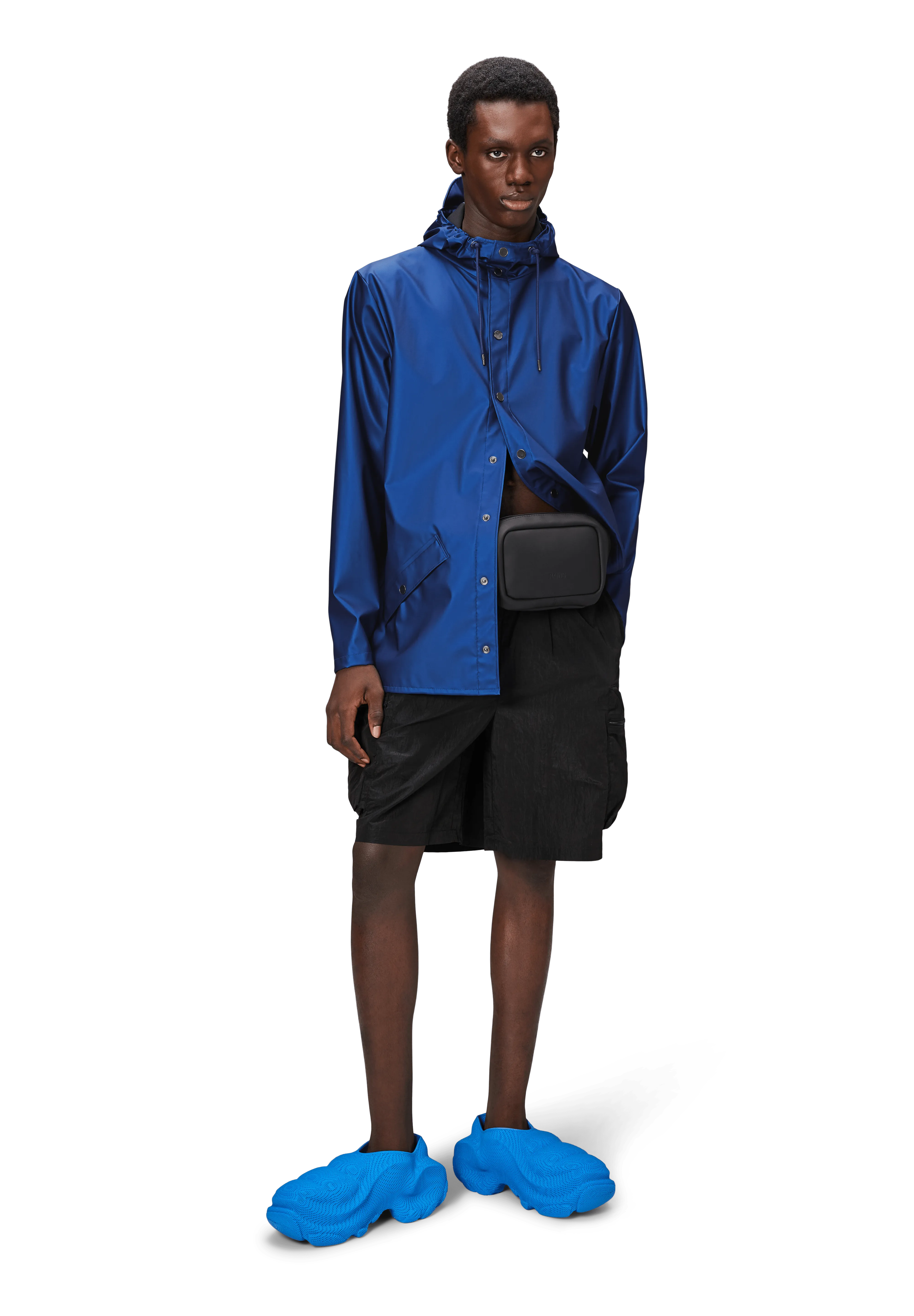 Jacket es un chubasquero unisex siempre contemporáneo que ofrece una alta funcionalidad en una silueta minimalista. Las características incluyen bolsillos con solapa oblicua de doble soldadura, puños ajustables y dobladillo de cola de pez. El look se completa con cierres a presión, ojales debajo de los brazos y un canesú en la espalda con aberturas ocultas.