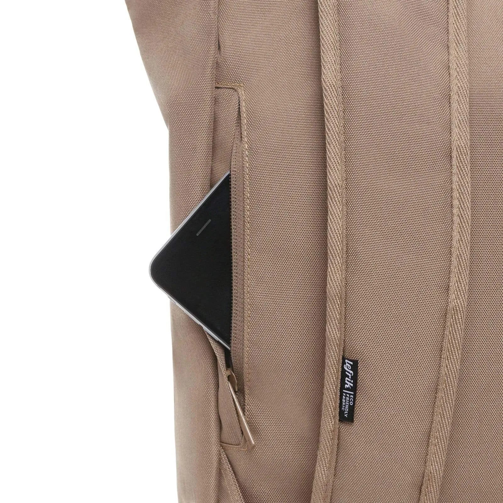 El diseño exterior minimalista ofrece 2 bolsillos de acceso rápido, 1 en la parte inferior y 1 en la parte posterior, lo que hace que la Roll sea muy conveniente para llevar cosas durante todo el año o excursiones de un día. Cuando el cierre en roll está desenrollado tiene un capacidad de hasta 30L, cuando está enrollado de hasta 20L