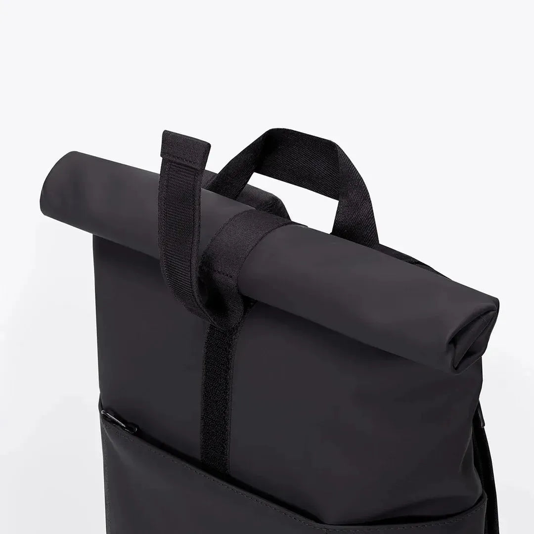 Esta mochila minimalista es la versión más pequeña de la mochila mediana Hajo (aproximadamente una cuarta parte más pequeña). Ya sea de viaje en bicicleta, de compras o en la vida nocturna, es adecuada para cualquier ocasión. La tapa enrollable se cierra con un cierre de velcro y permite llenar de forma práctica la Mochila Hajo Mini, que cuenta con un compartimento con cremallera en el exterior.