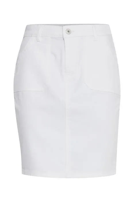 Falda blanca por encima de la rodilla en tejido tipo vaquero.
