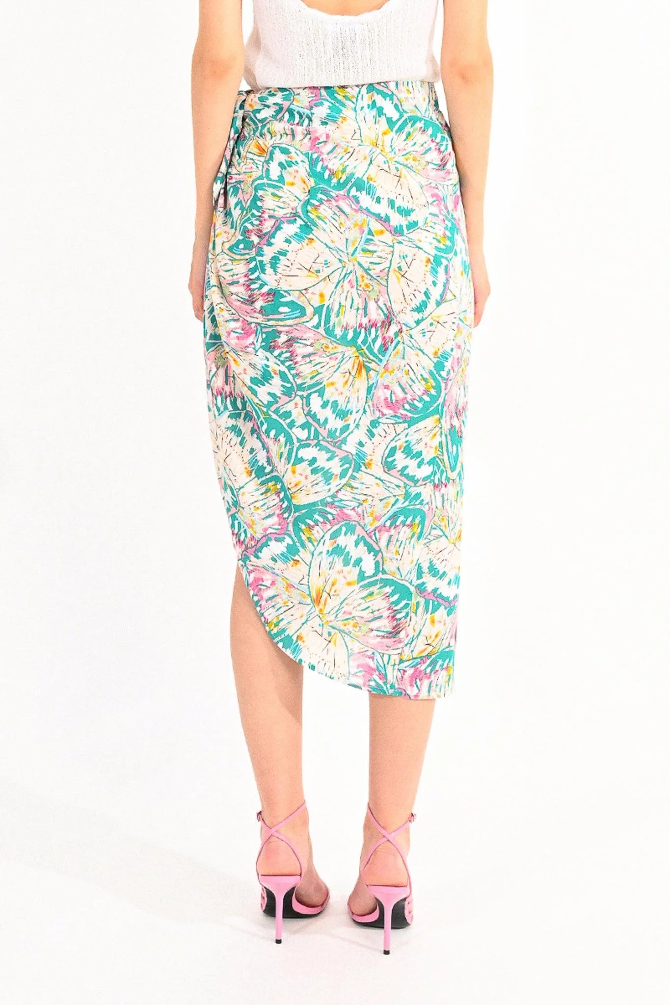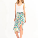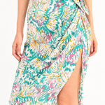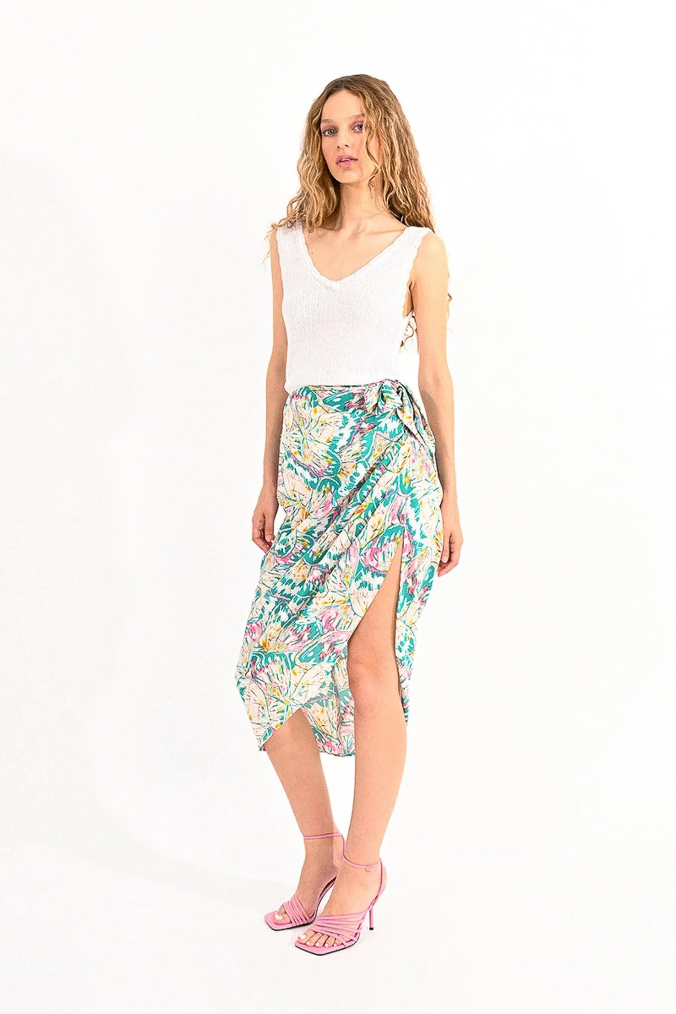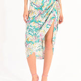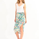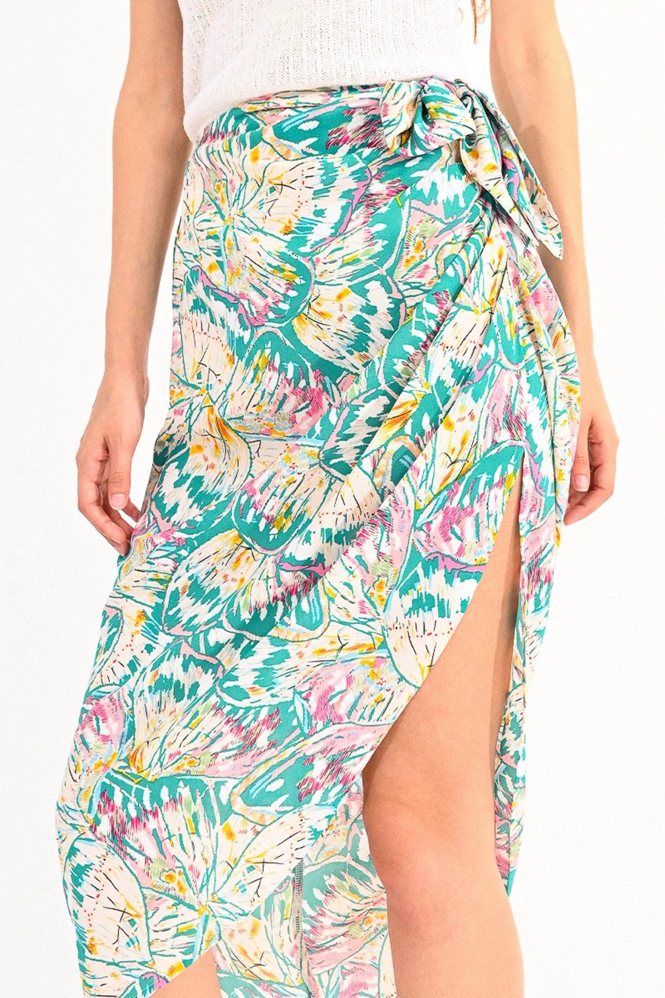 Falda larga estilo pareo estampada, cierre con cremallera en la espalda Largo: 83 cm Talla S