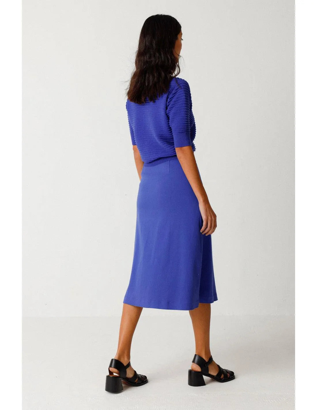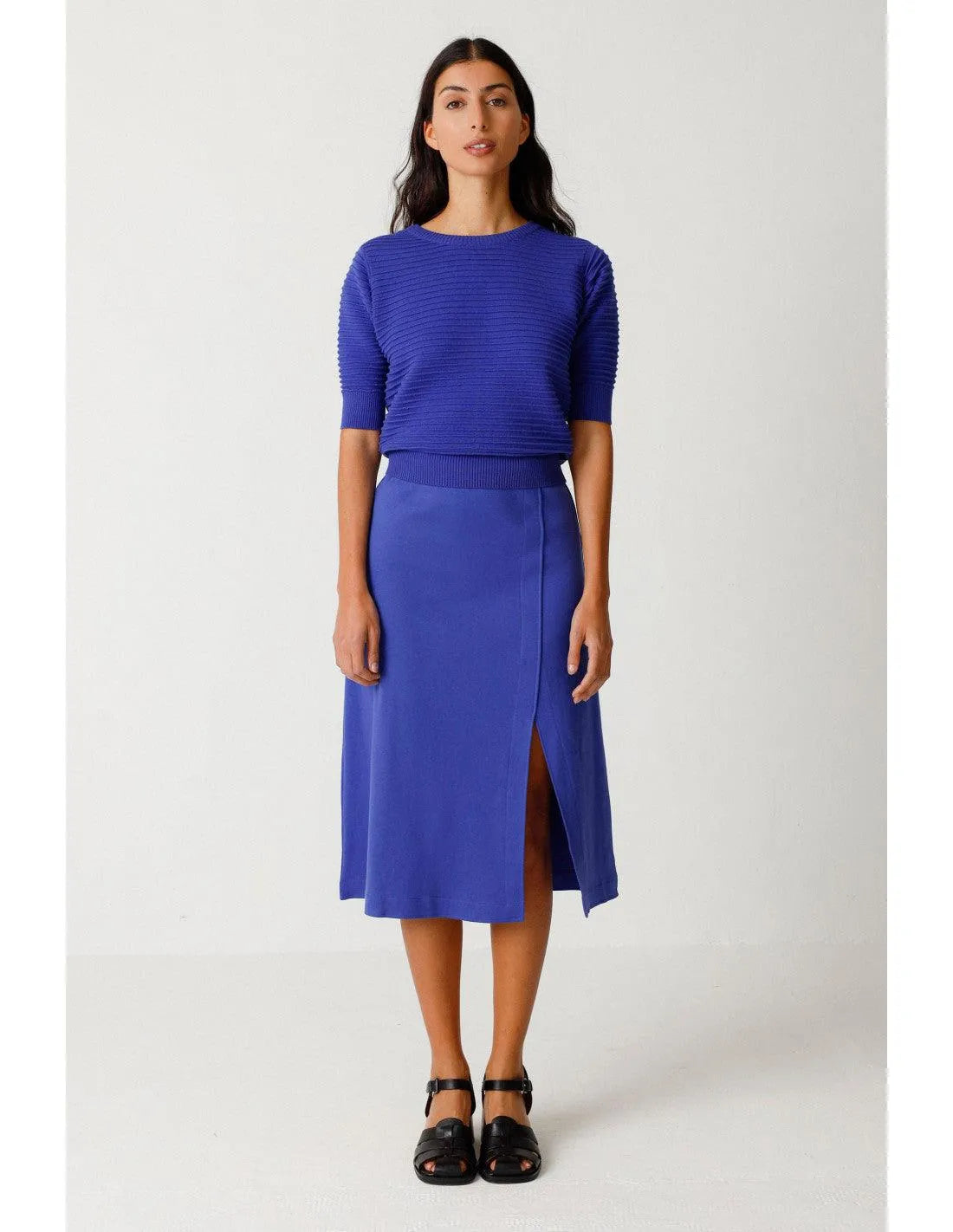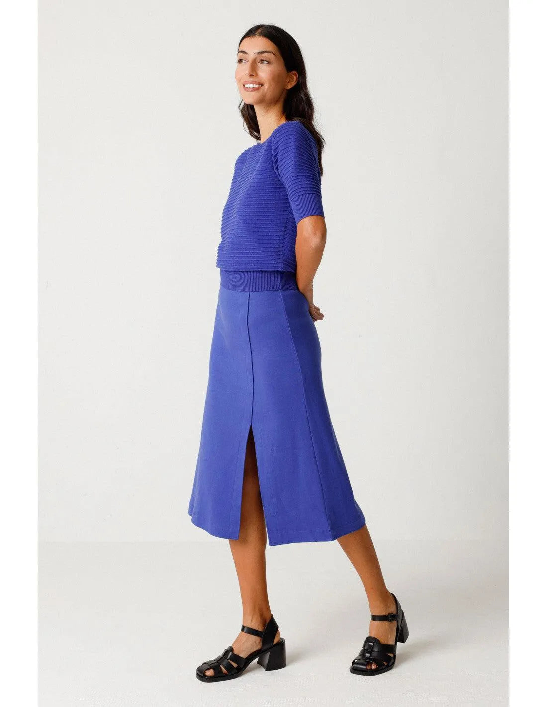 Falda de algodón orgánico con certificado GOTS. Largo por debajo de la rodilla con abertura frontal y forma evasé. Cómoda cintura elástica y tejido de punto extensible. Estampado de cuadros.