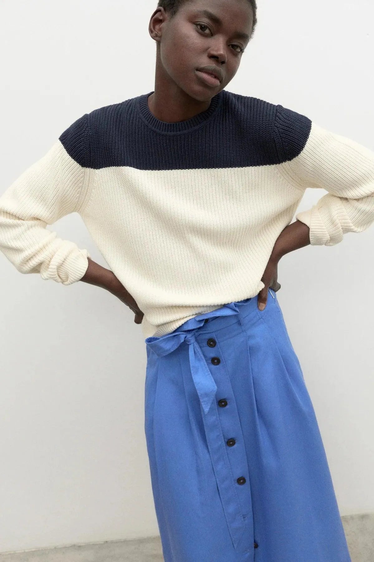 El jersey de punto Elm tiene puños y dobladillo acanalados. Fabricado con un 70% de Algodón orgánico. Nuestro Algodón orgánico tiene la misma calidad que el mejor Algodón convencional, pero sin el impacto negativo asociado al medio ambiente. Sus semillas no son genéticamente modificadas, lo que evita serios problemas a la biodiversidad. Además se cultiva sin el uso de pesticidas, insecticidas ni fertilizantes, todo ello mediante buenas prácticas en el uso del agua y en el cuidado del suelo. Un jersey bicolor disponible en dos combinaciones cromáticas. Perfecto para resguardarse del frío y cuidar del planeta al mismo tiempo.