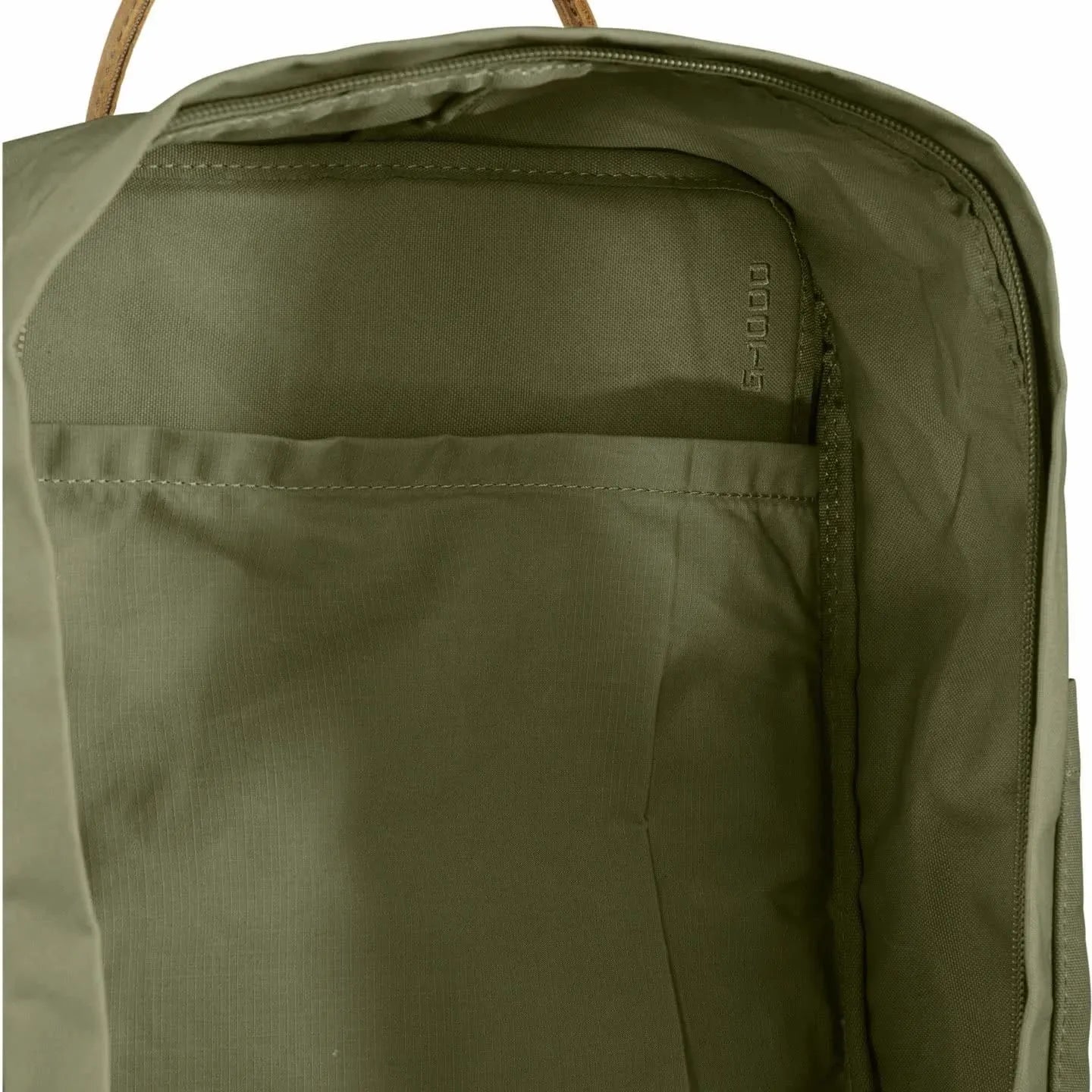 Mochila Kånken en resistente G-1000 HeavyDuty Eco con asas y detalles en cuero. Gran bolsillo principal, bolsillo delantero y almohadilla acolchada.