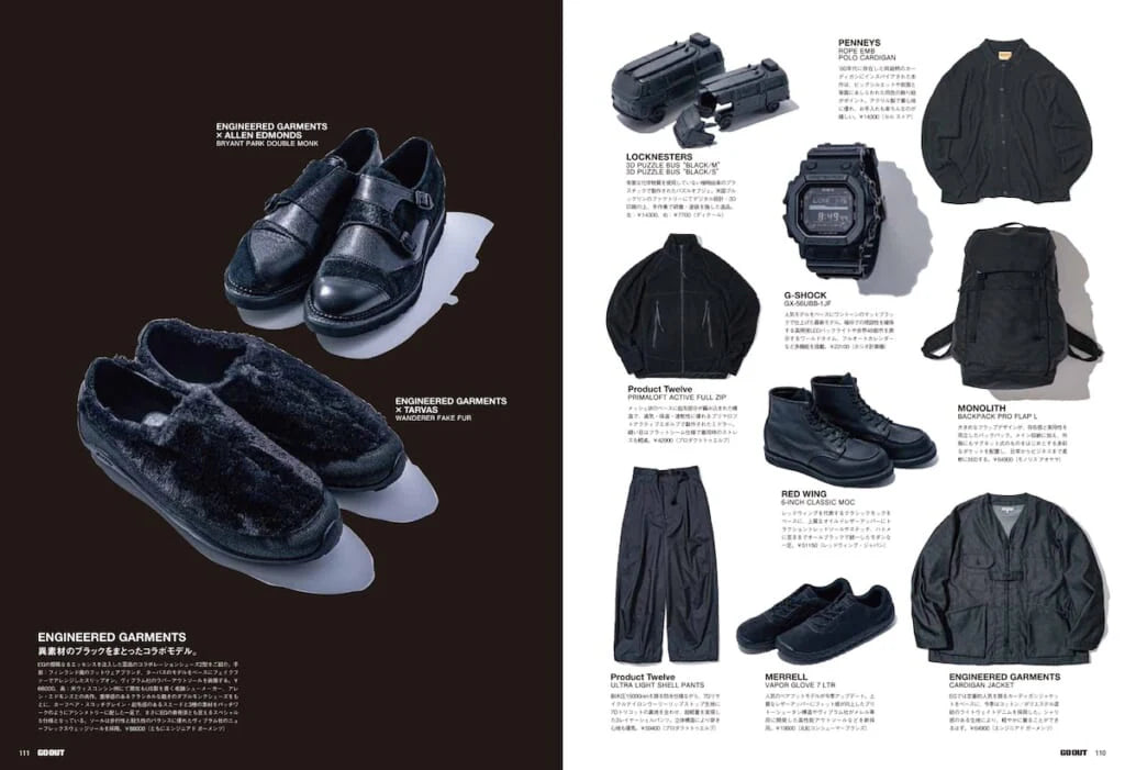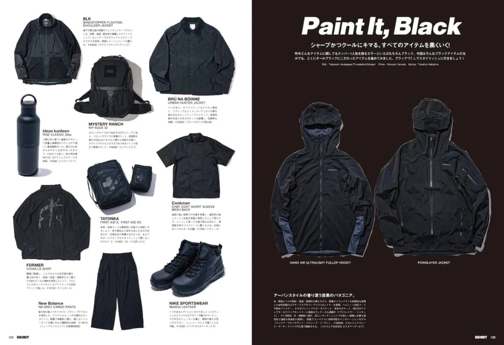 Además del enfoque sobre vehículos, la edición incorpora una selección de prendas gorpcore negras, ampliando la lectura del número hacia la moda funcional y la manera en que el vestuario se integra en este tipo de estilo de vida.