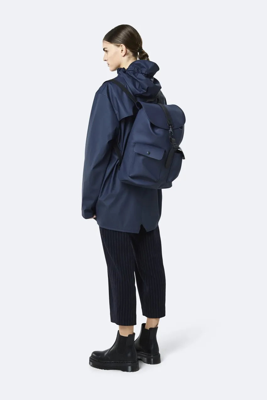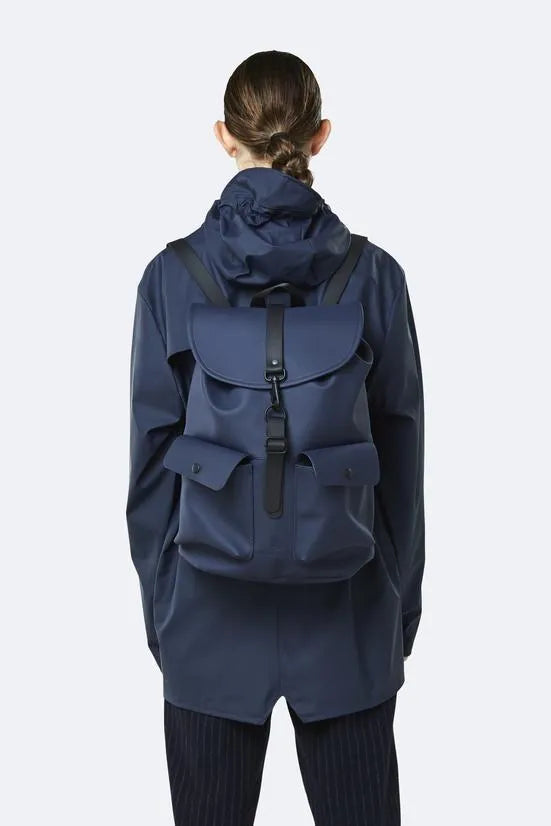 Camp Backpack es una versión urbana de la clásica mochila de campamento. Esta mochila presenta un cierre superior con cordón y una solapa superior con la correa de PU de Rains y el cierre con hebilla de mosquetón. La mochila Camp también tiene una funda interna para computadora portátil que se adapta a una computadora portátil de 13 "y 15". Tiene bolsillos de carga delanteros con botón a presión para un fácil acceso al almacenamiento sobre la marcha.
