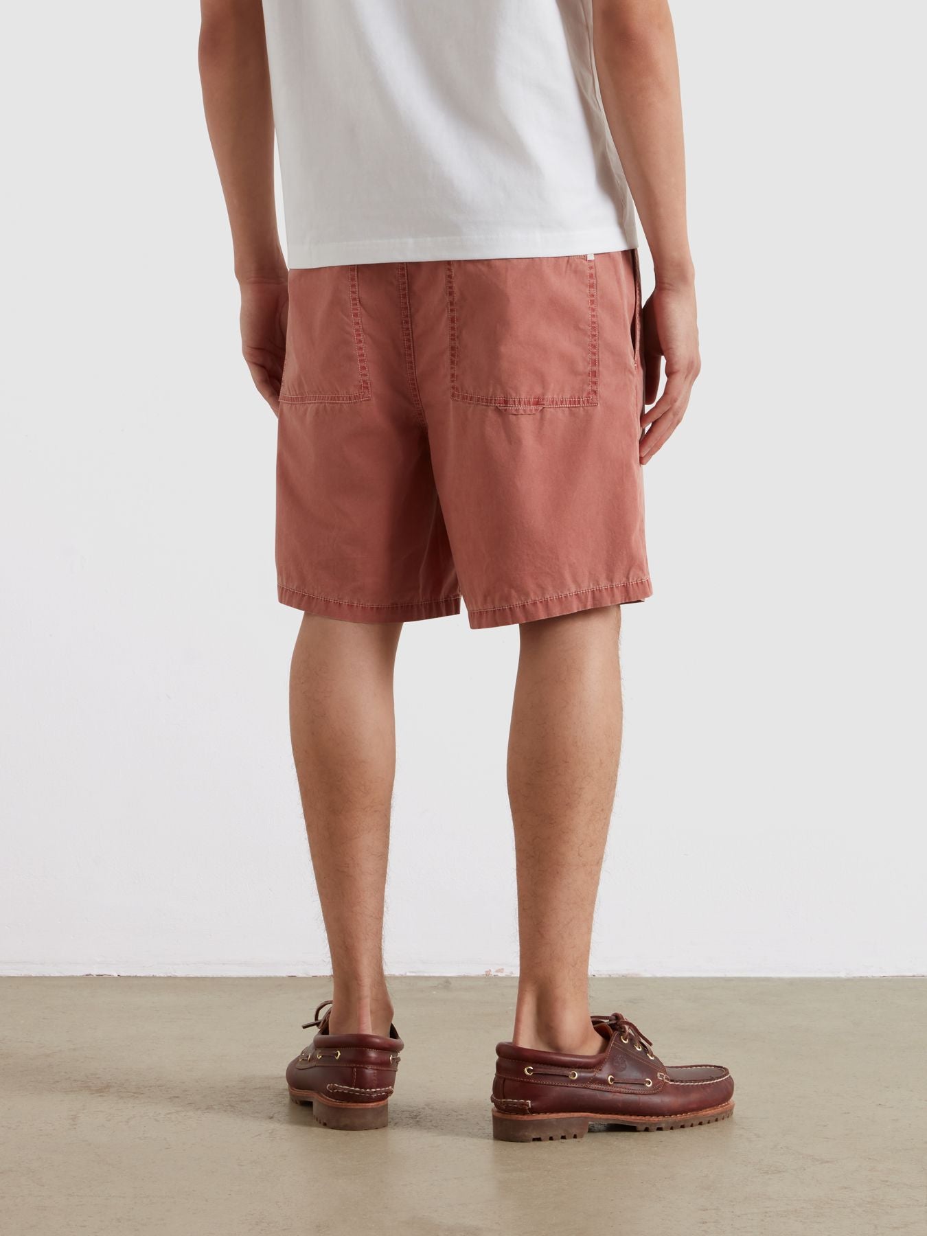 El Swinton Drawstring Herringbone destaca frente a otros pantalones cortos por la combinación de cintura elástica, cordón exterior, tejido de espiga y silueta amplia. Mantiene la comodidad de un short relajado, pero con una textura y una construcción más interesantes que una bermuda lisa básica.