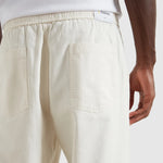 El diseño incorpora cintura elástica con cordón interior, un detalle que refuerza la comodidad sin alterar la limpieza exterior de la prenda. Esta construcción lo hace más relajado que un pantalón de vestir clásico, pero más cuidado que un pantalón puramente deportivo.