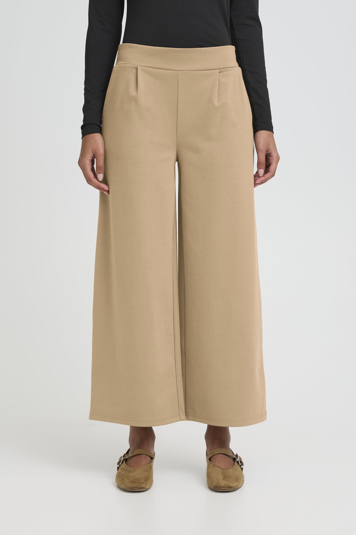 Pantalón tipo jogger de la línea Kate de ICHI en formato culote o ancho de pierna y capri.
