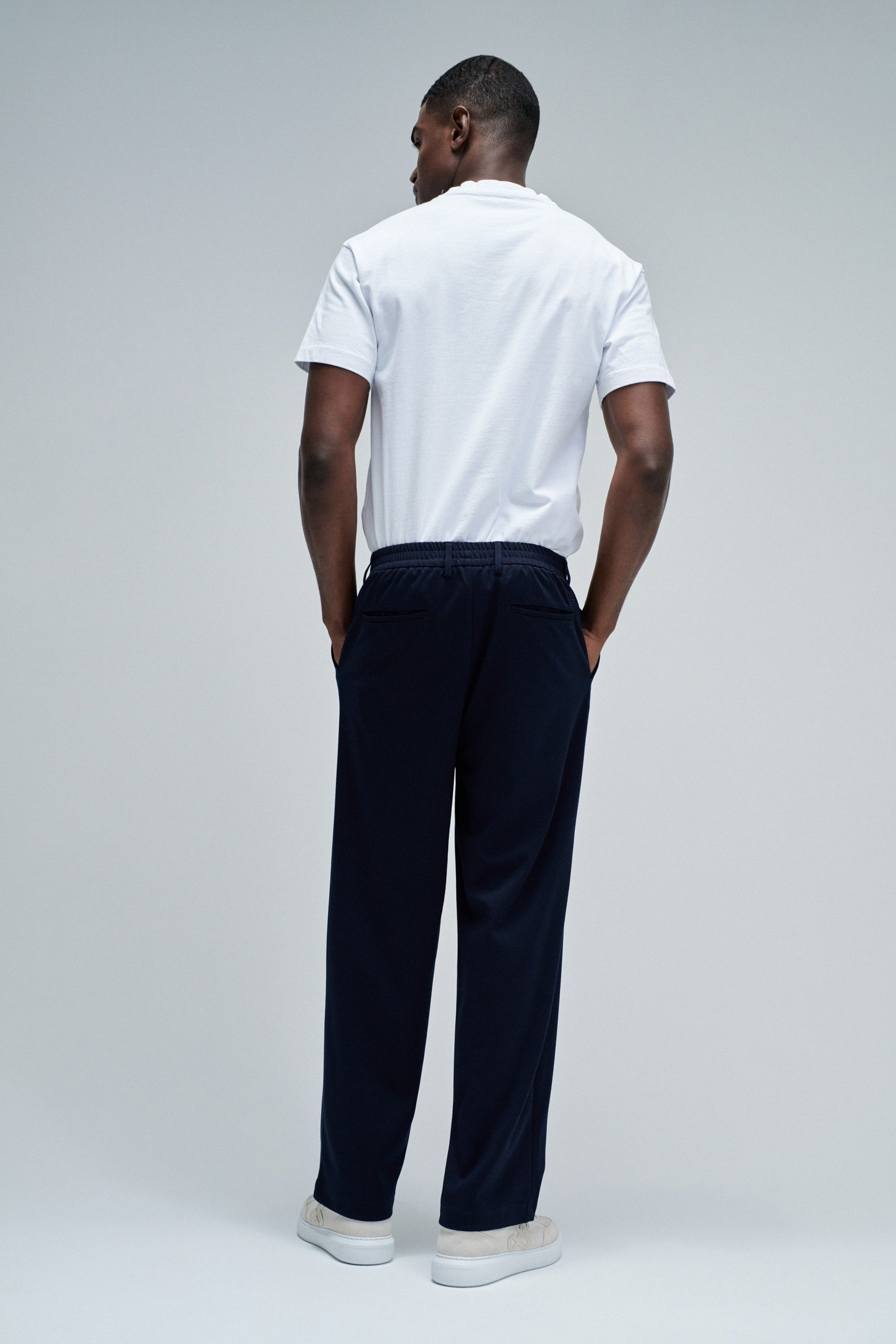 Presentan corte recto con cintura elástica y cordón ajustable, lo que facilita el ajuste y aporta una sensación de comodidad durante todo el día. Los bolsillos laterales y traseros completan un diseño funcional que mantiene el carácter tradicional del chino, mientras que el tejido con cierta estructura permite una caída limpia y un look equilibrado.