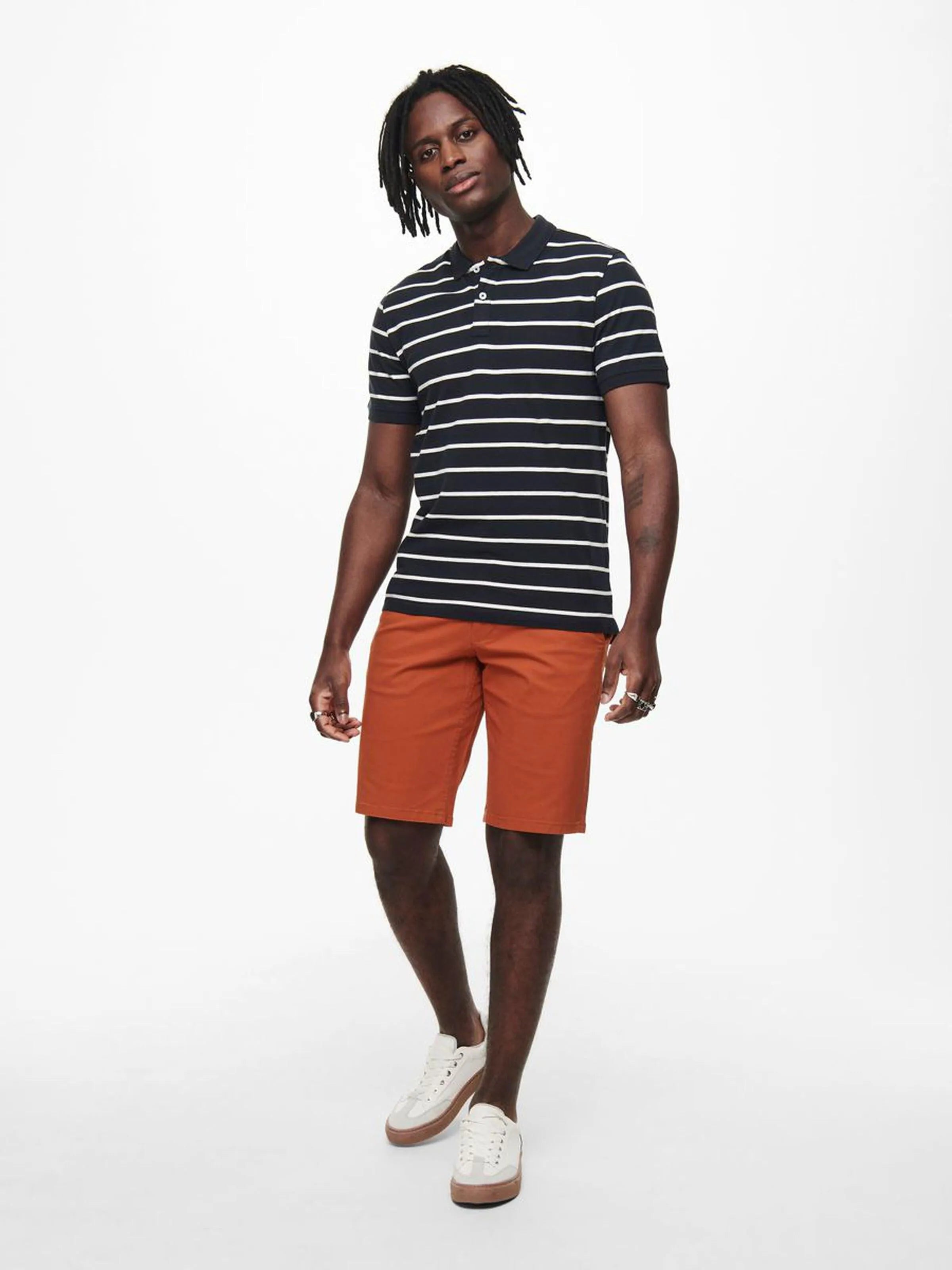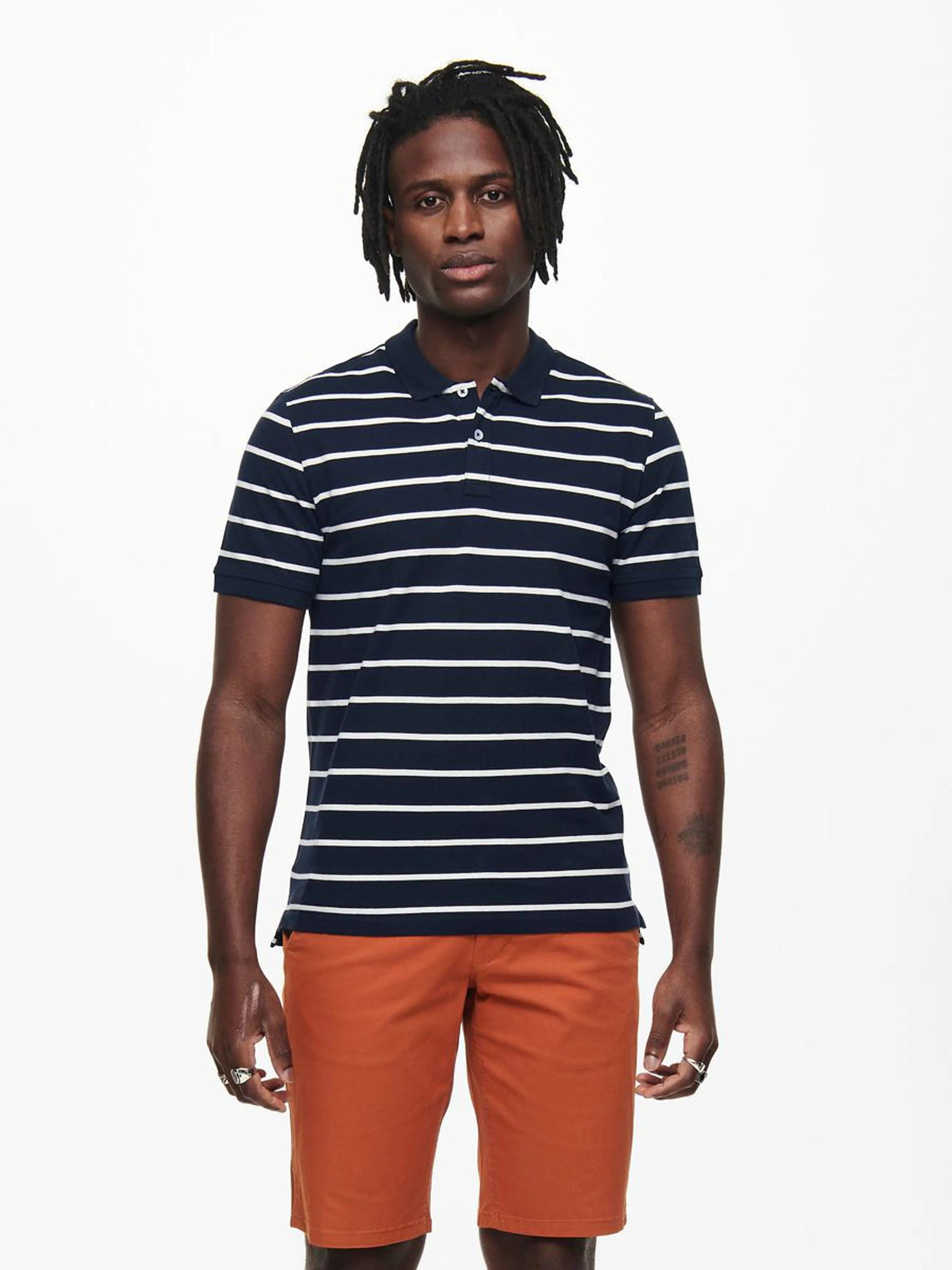 - Polo de manga corta - Estampado de rayas en contraste - Cierre frontal de botones - Longitud frontal: 71 cm en talla L - Longitud de espalda: 73 cm en talla L - El modelo presentado es talla L