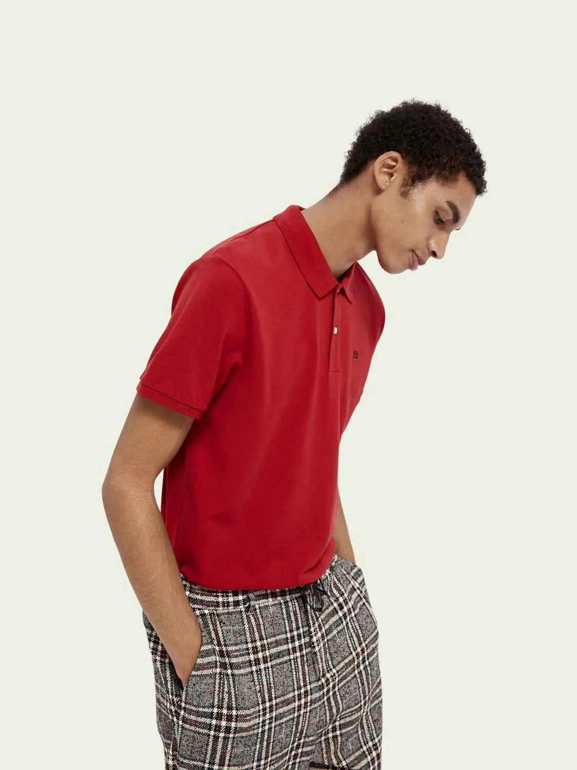 Este polo teñido en prenda está confeccionado en piqué de algodón y está disponible en múltiples colores.