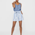 Short paperbag con cintura alta, cinturilla elástica y bolsillos delanteros. Los pantalones cortos también tienen un cinturón envolvente en la cintura. Úselos con una blusa a juego para un lindo look de verano.