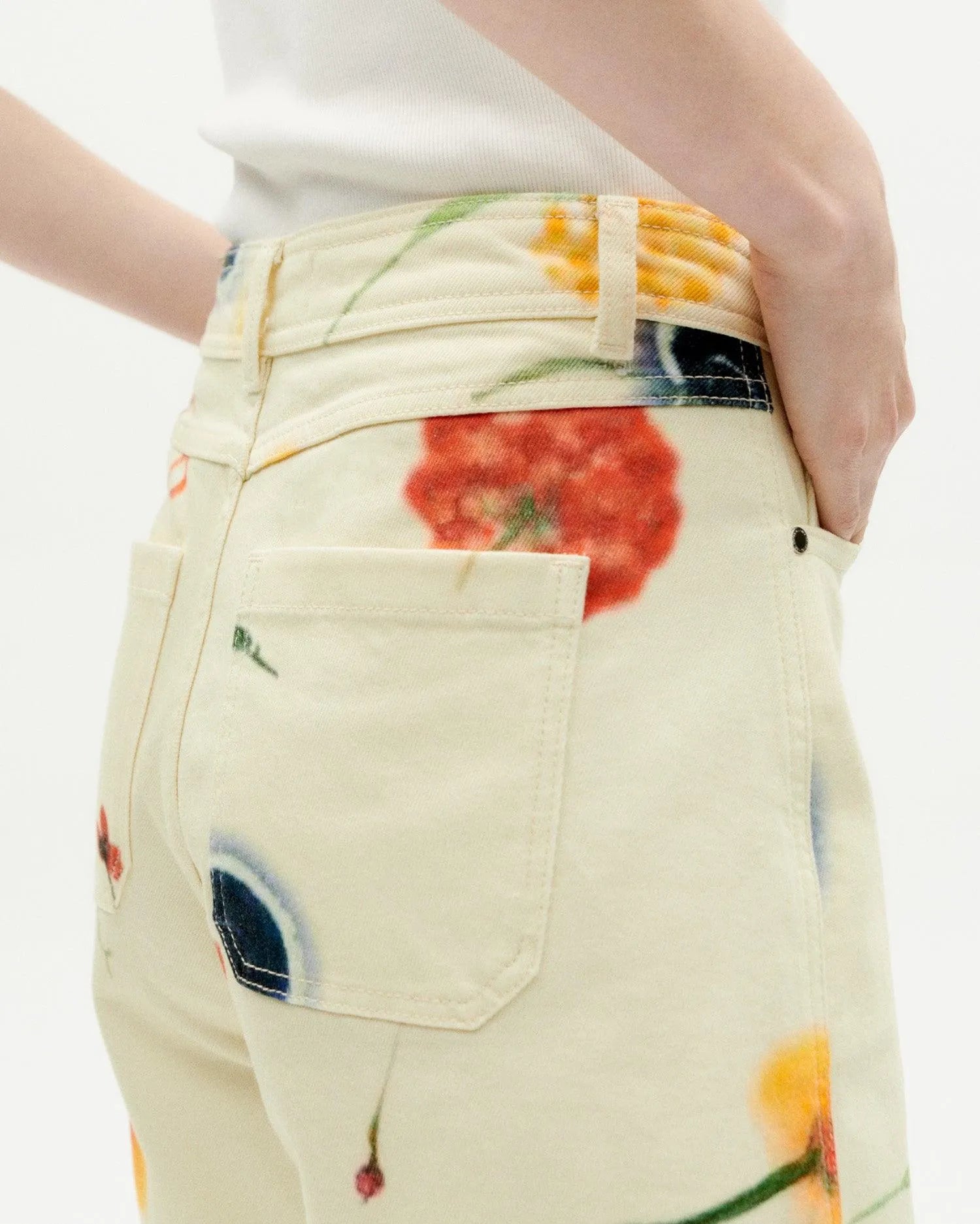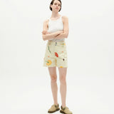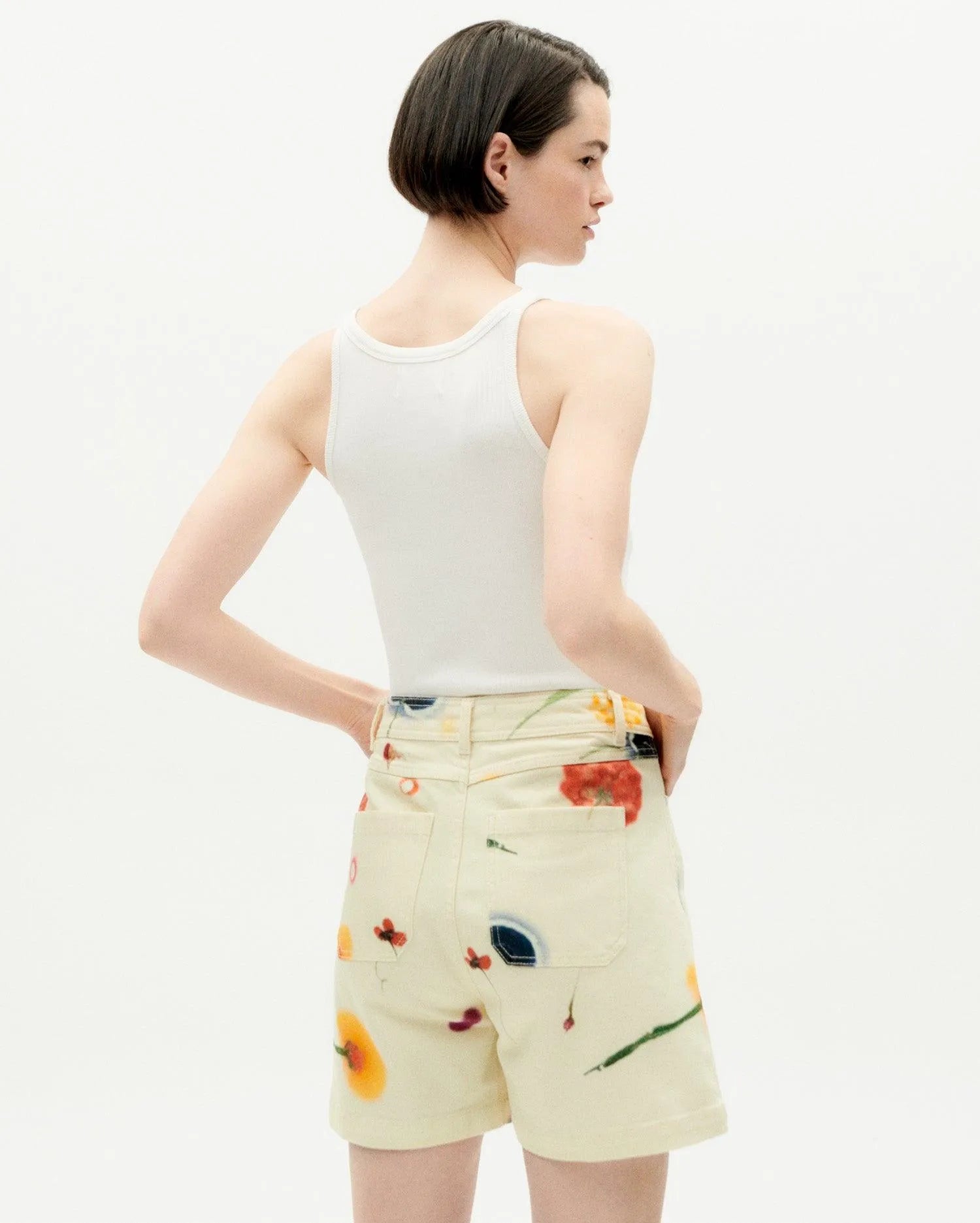 Pantalón corto o bermuda vaquera con estampado de Thinking Mu.