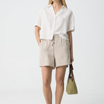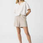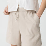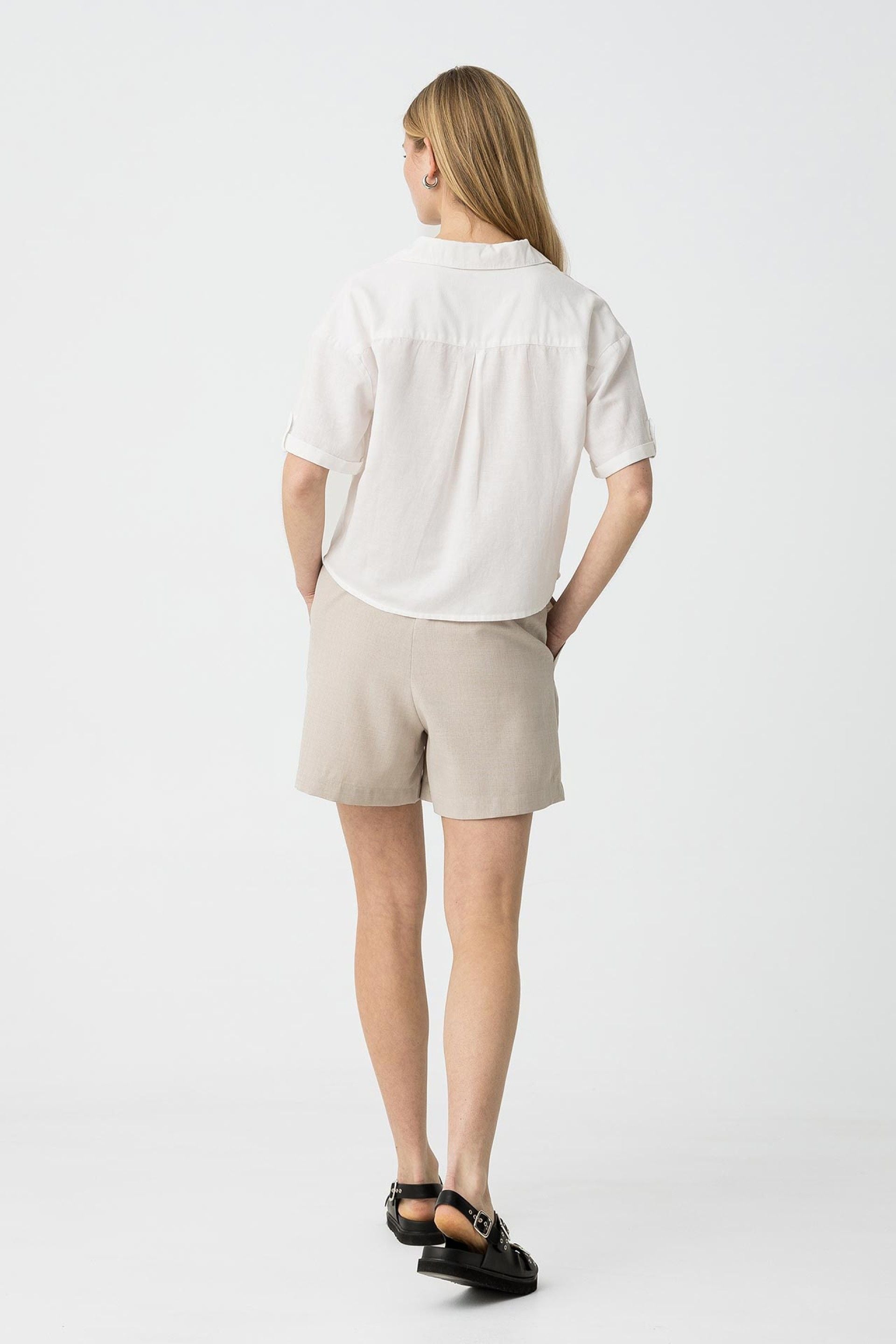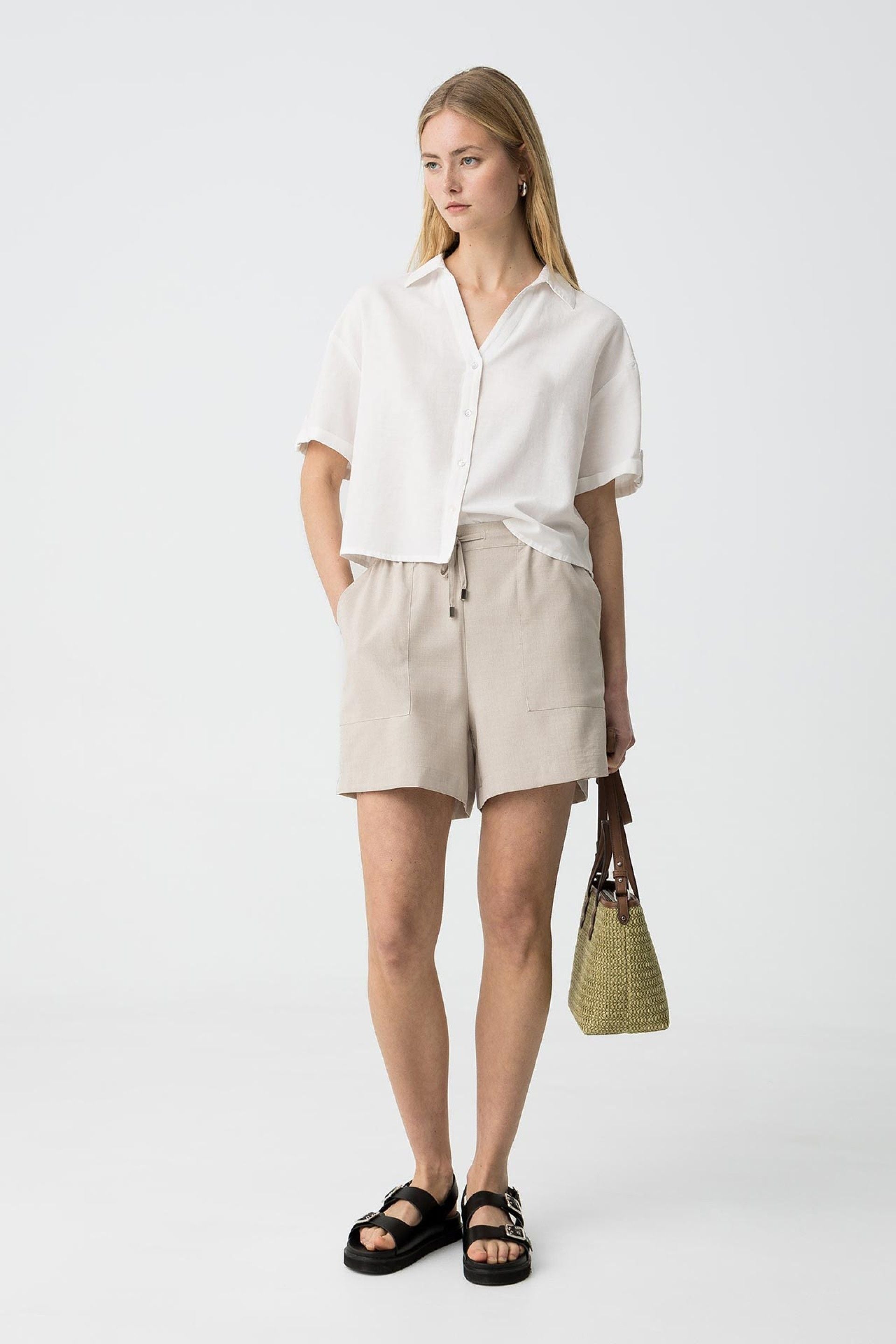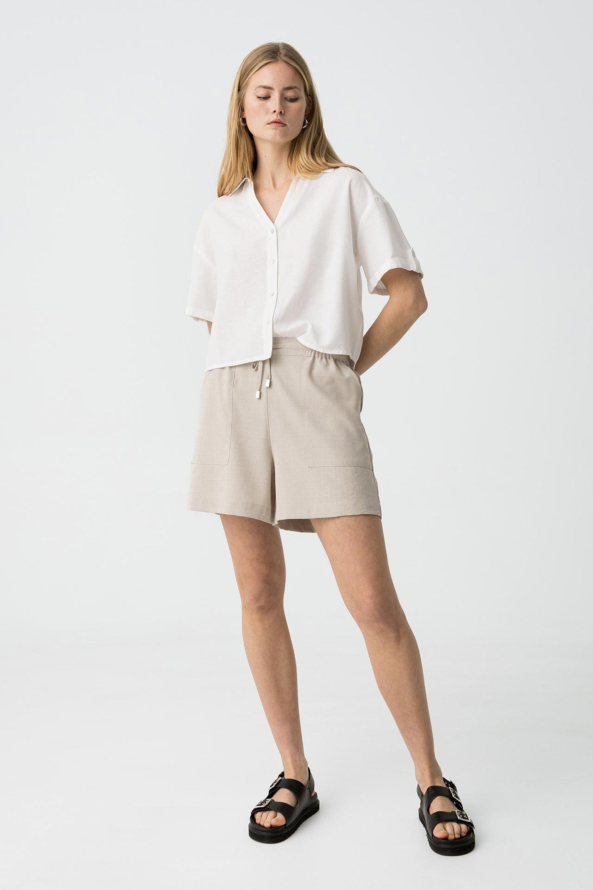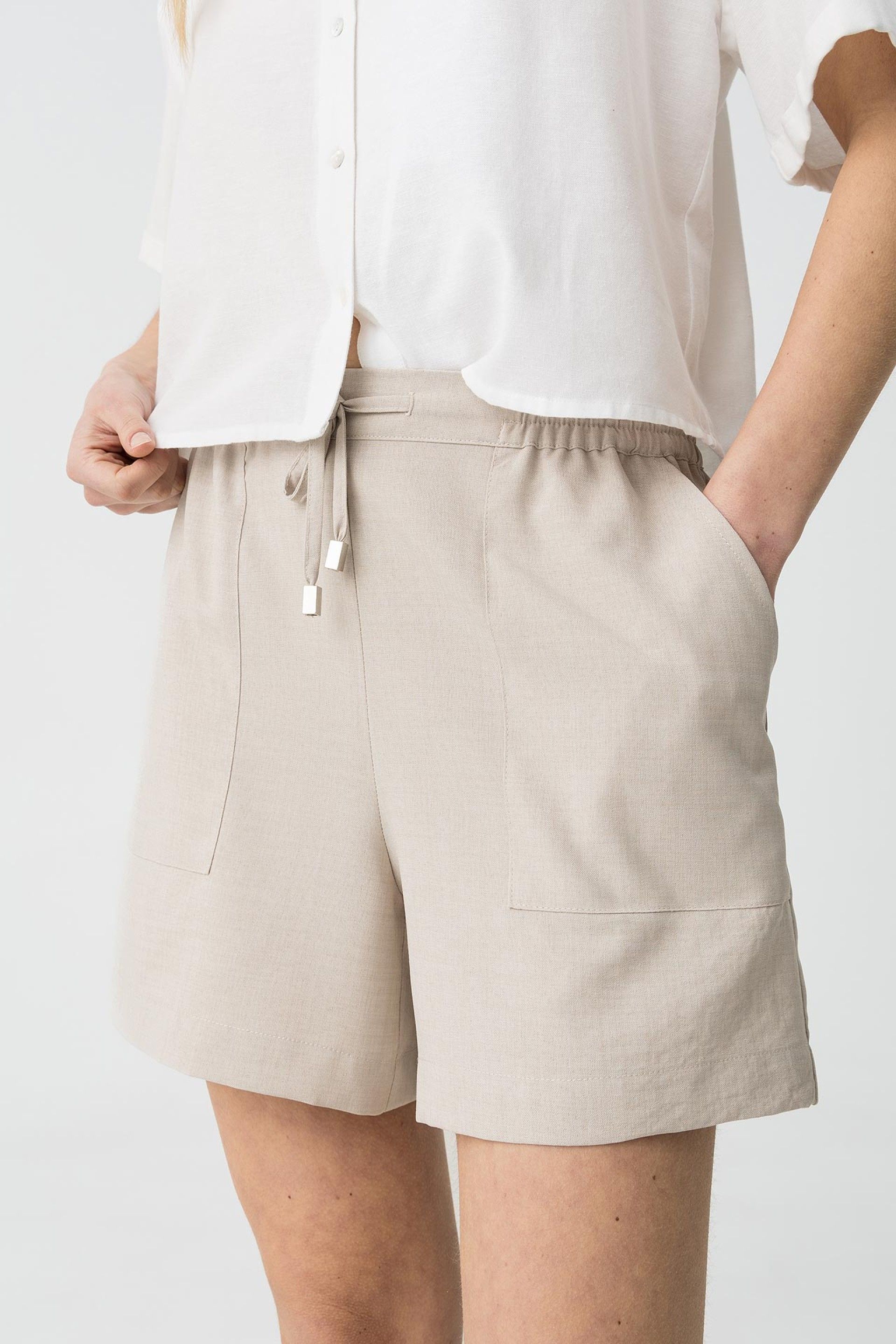 Shorts de tiro medio con cintura elástica. Bolsillos laterales.