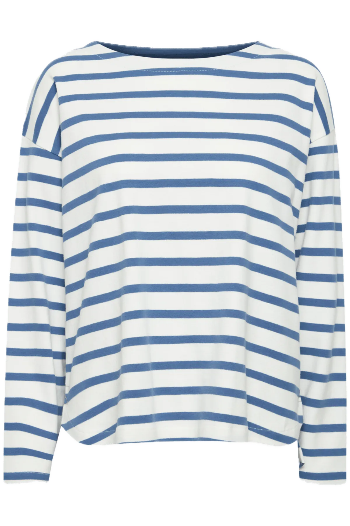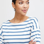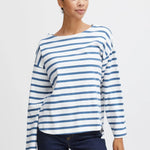 Sudadera a rayas de la marca B.Young en estampado a rayas blanco y azul.