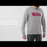 Sudadera clásica de manga larga en un fantástico y robusto jersey Felpa de algodón orgánico con un suave interior cepillado. Cuello redondo acanalado y puños y dobladillo acanalados. Logotipo de Fjällräven impreso en la parte delantera. Una prenda básica atemporal para el día a día: el trabajo, la escuela y las actividades al aire libre.