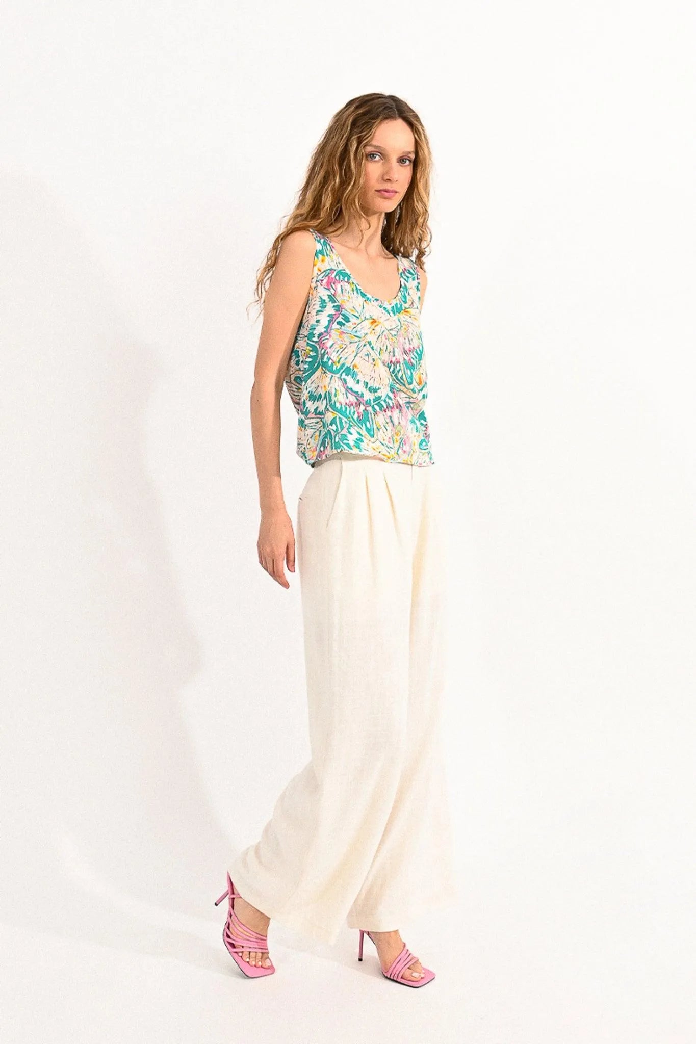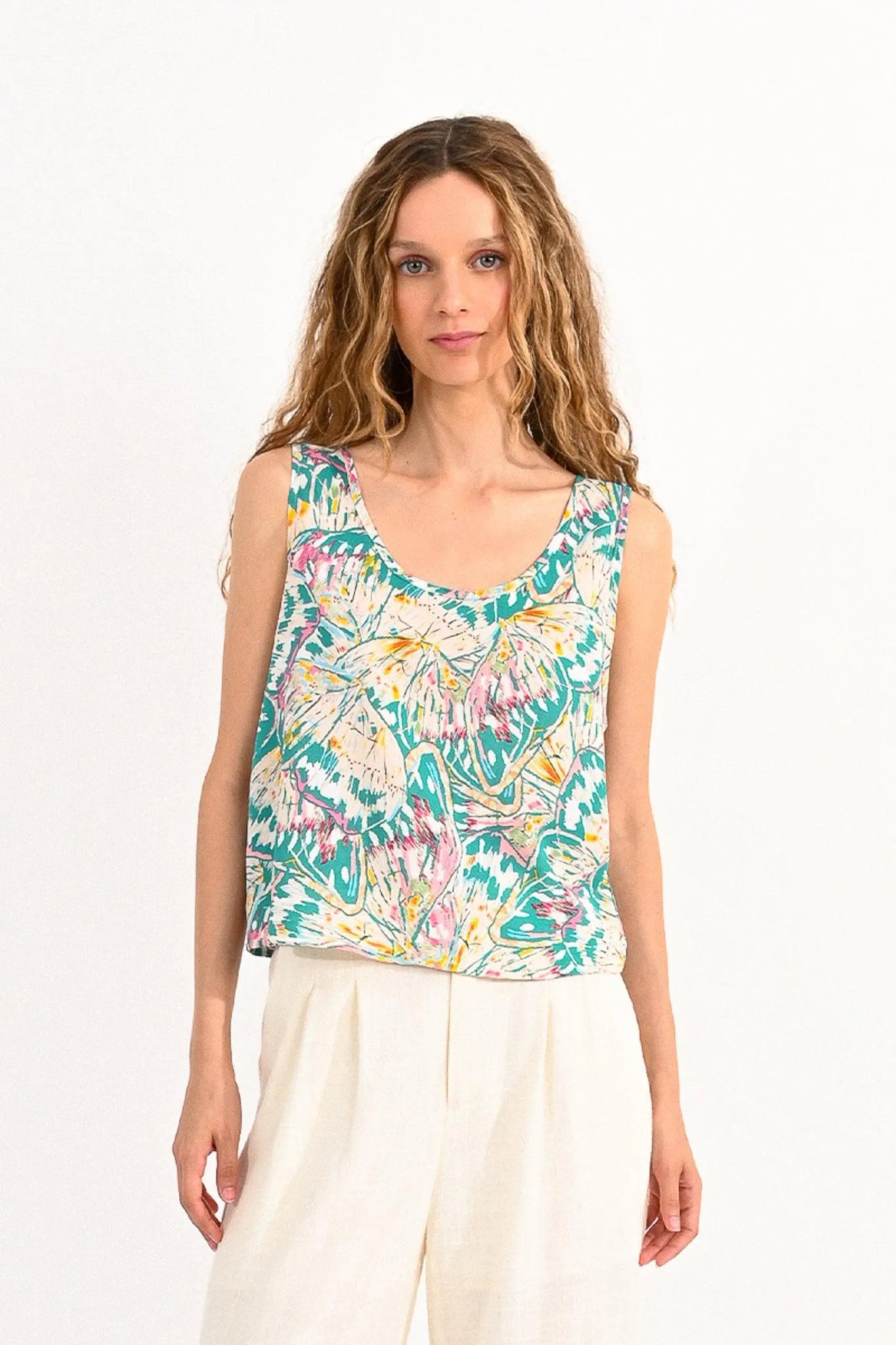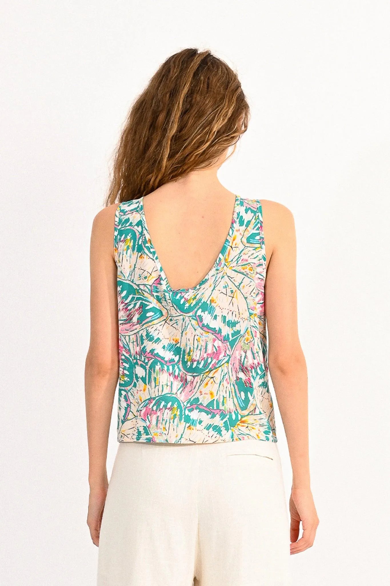 Camiseta de tirantes estampada, escote profundo en U delante y detrás. Largo: 50 cm Talla S