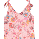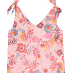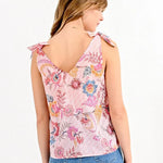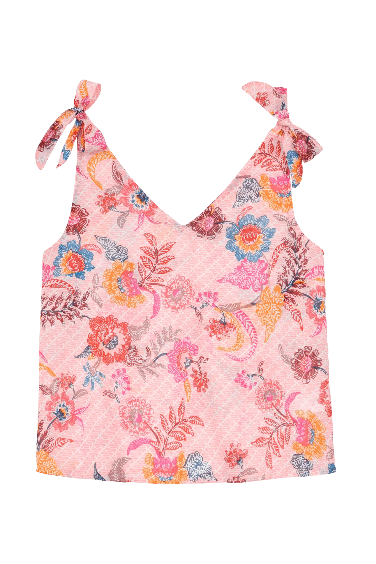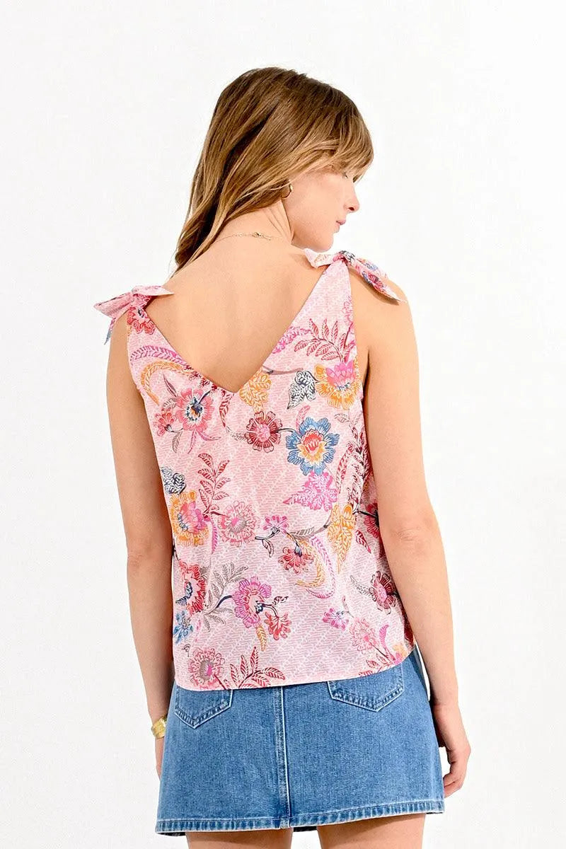Femenina blusa estampado de asillas o tirantes con nudo.