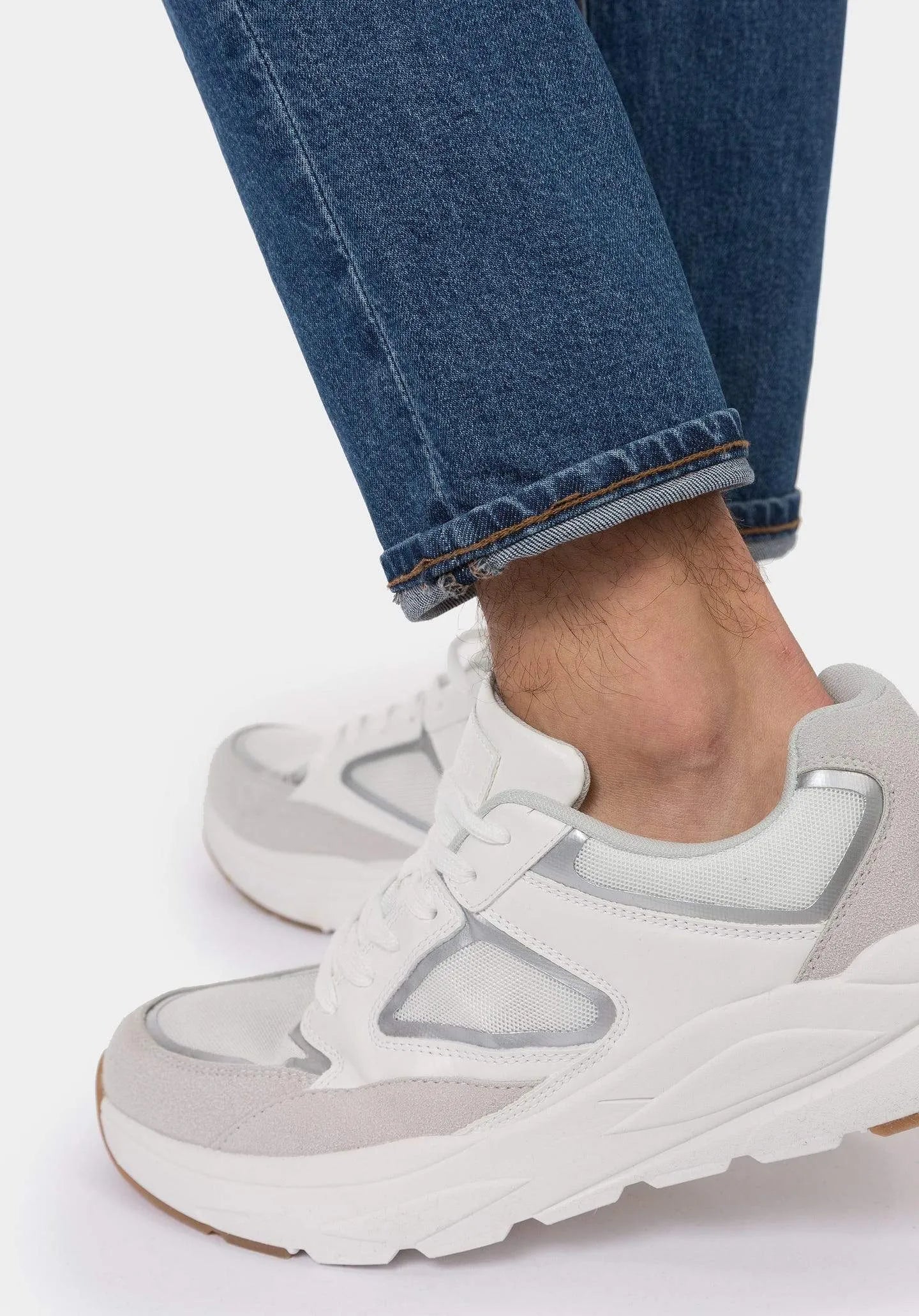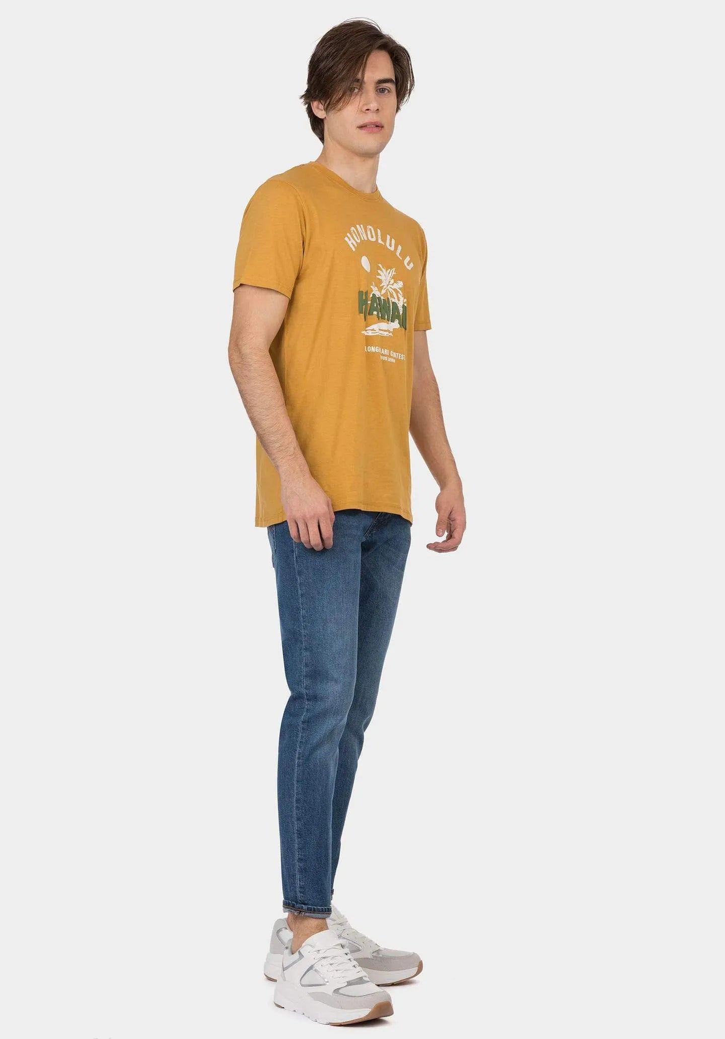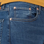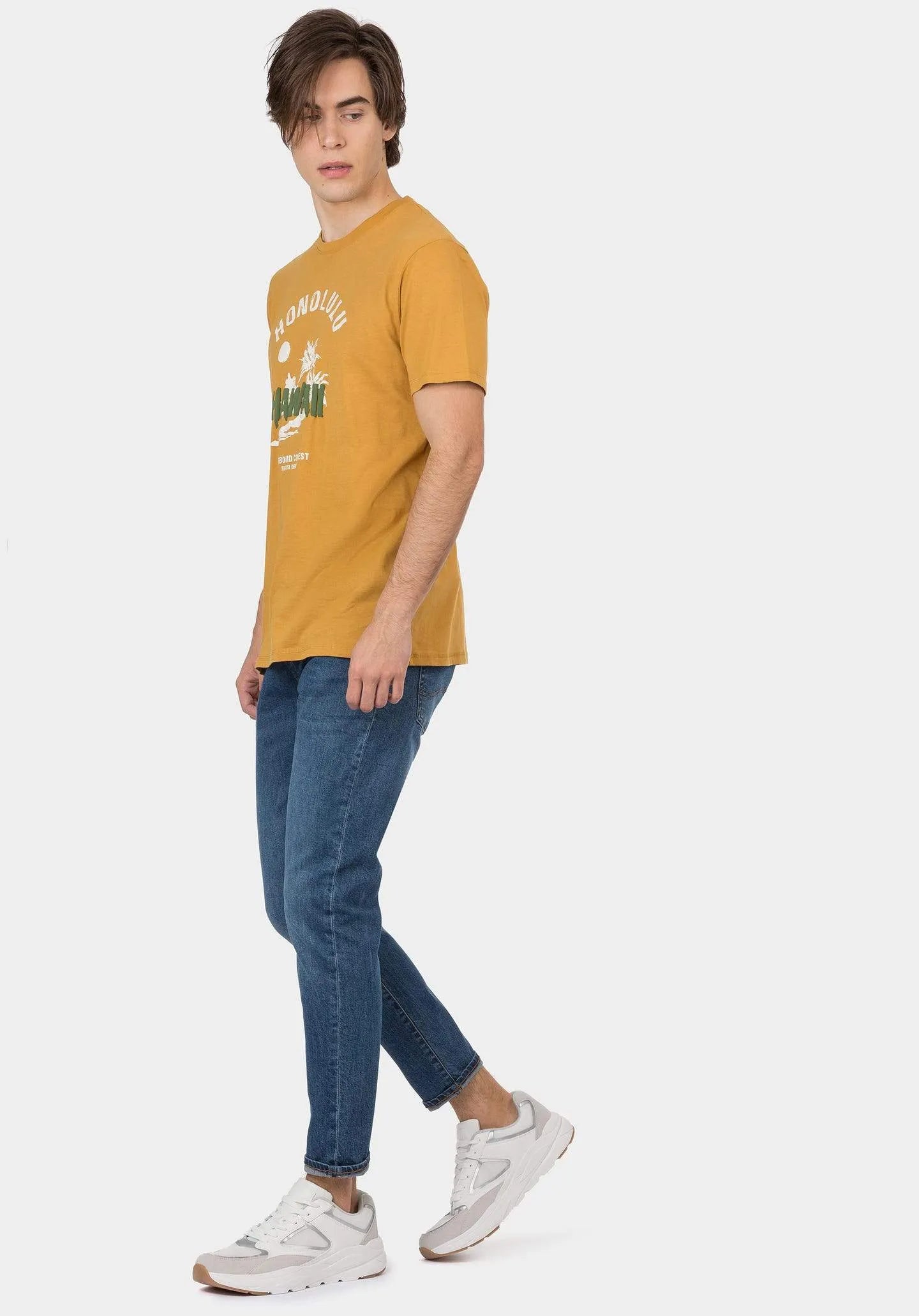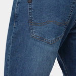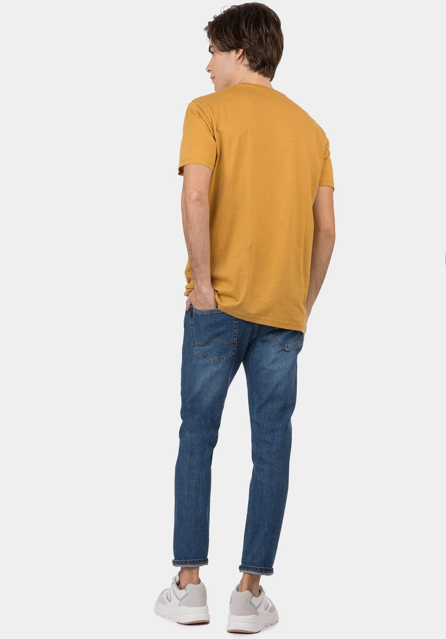 Jeans con cinco bolsillos. Cierre frontal con cremallera y botón metálico. Efecto lavado.