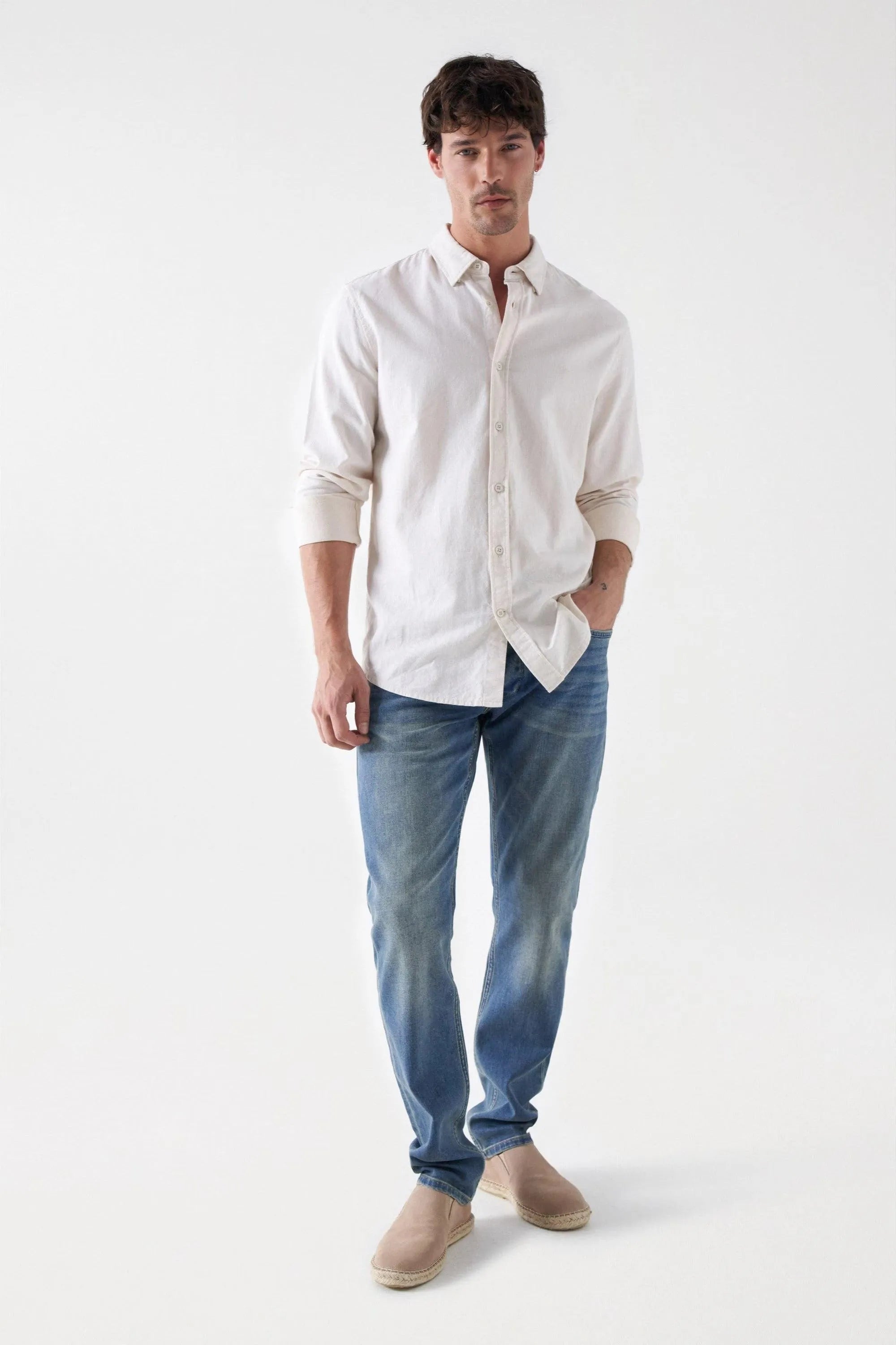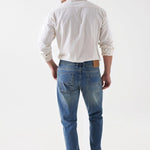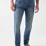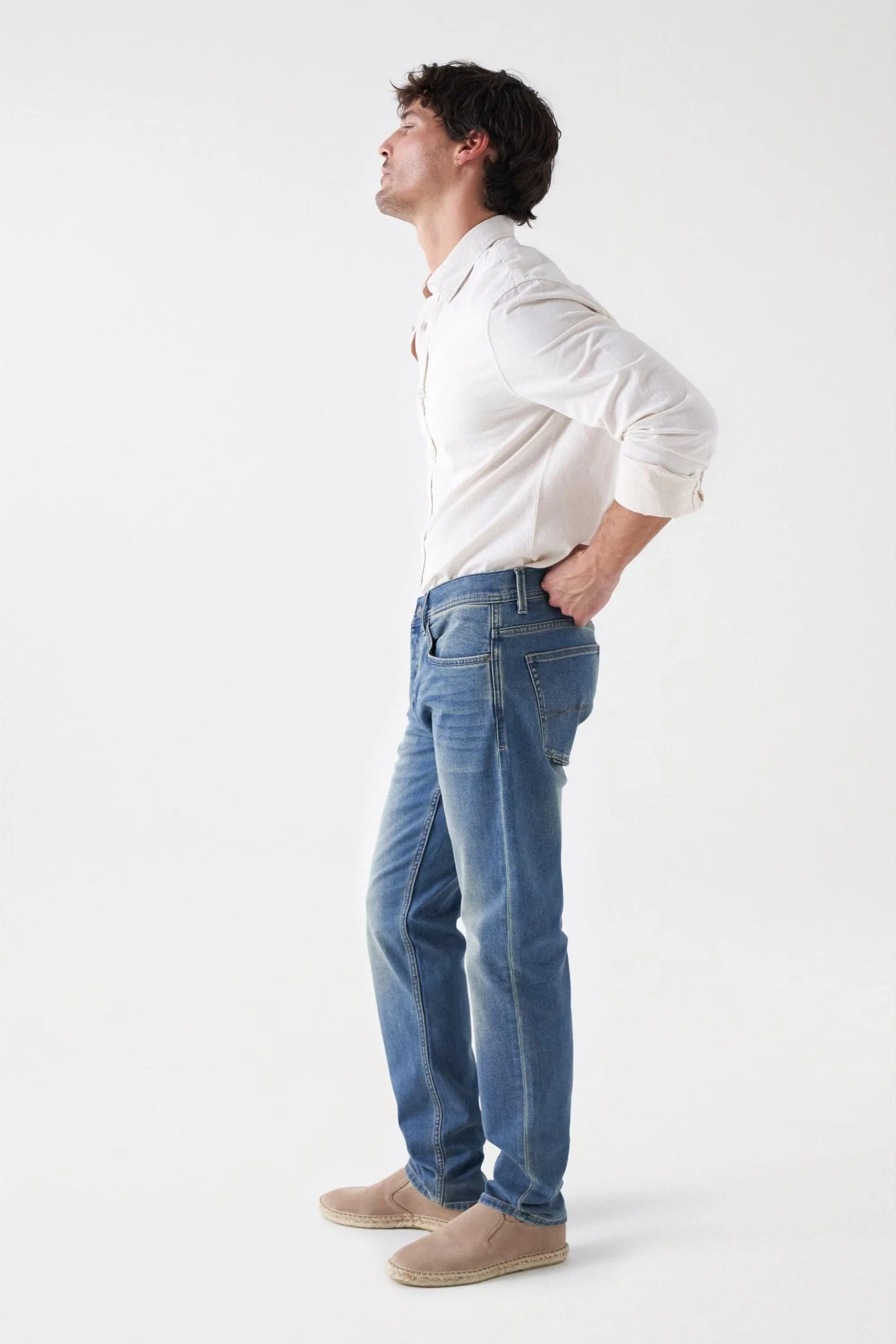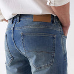 Vaqueros Slim Coolmax. Azul. Pierna Slim. Tiro bajo. Cierre de cremallera. Cinco bolsillos. Con presillas.