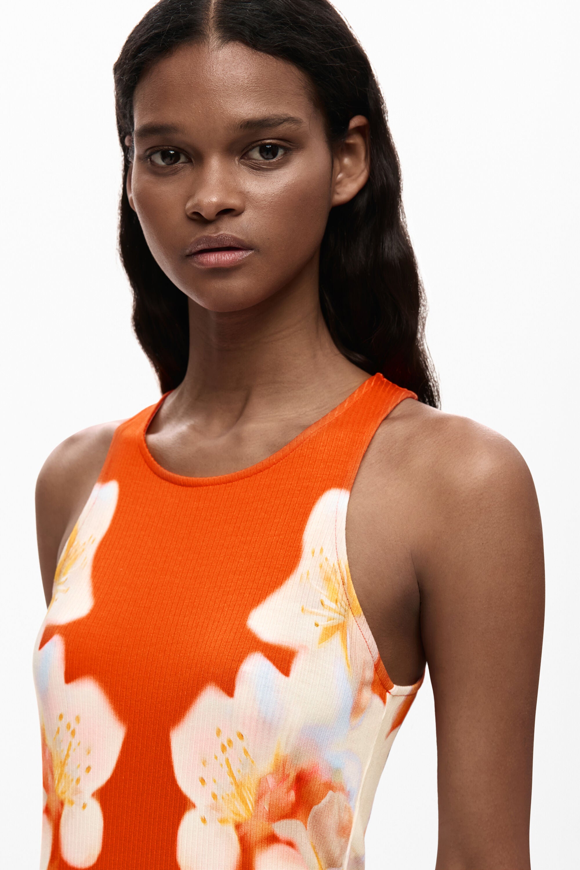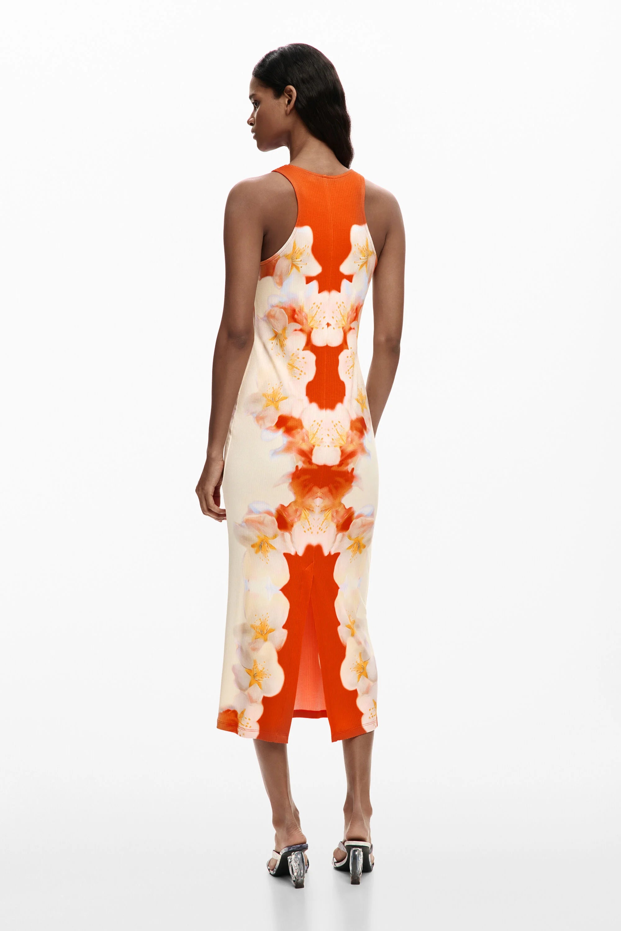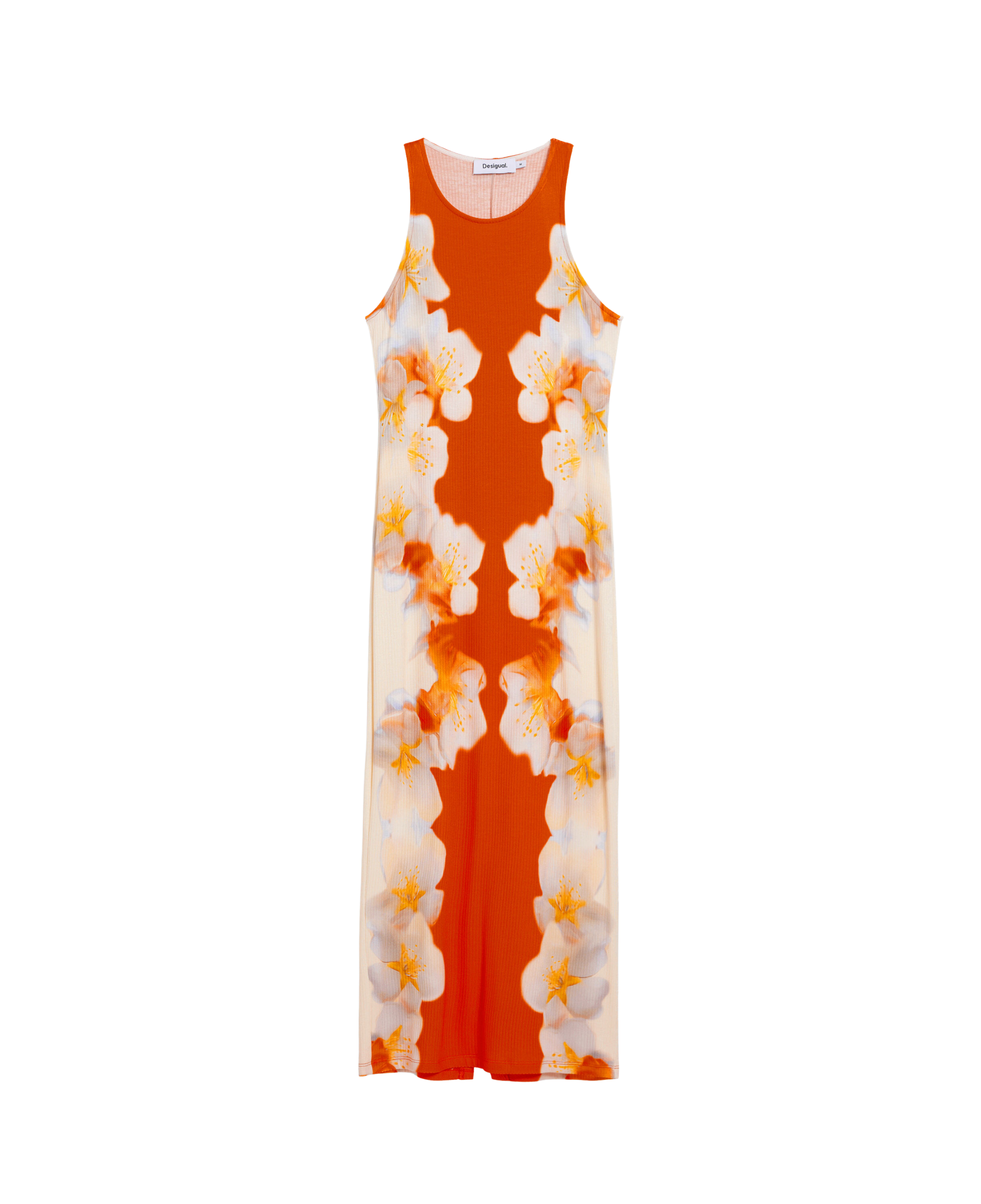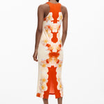 Vestido DESIGUAL Jasmine de Flores Laterales Naranja