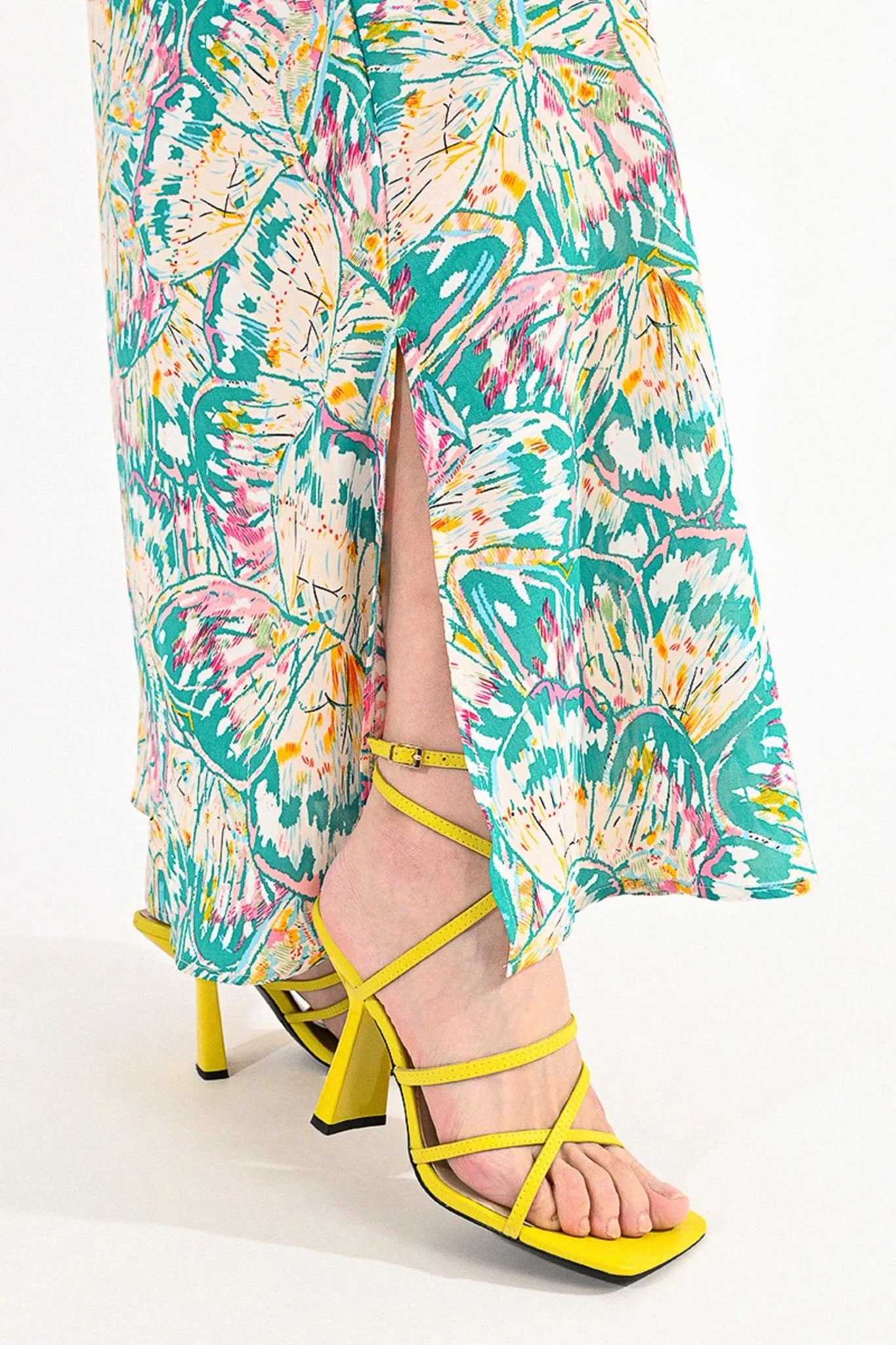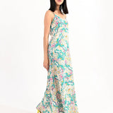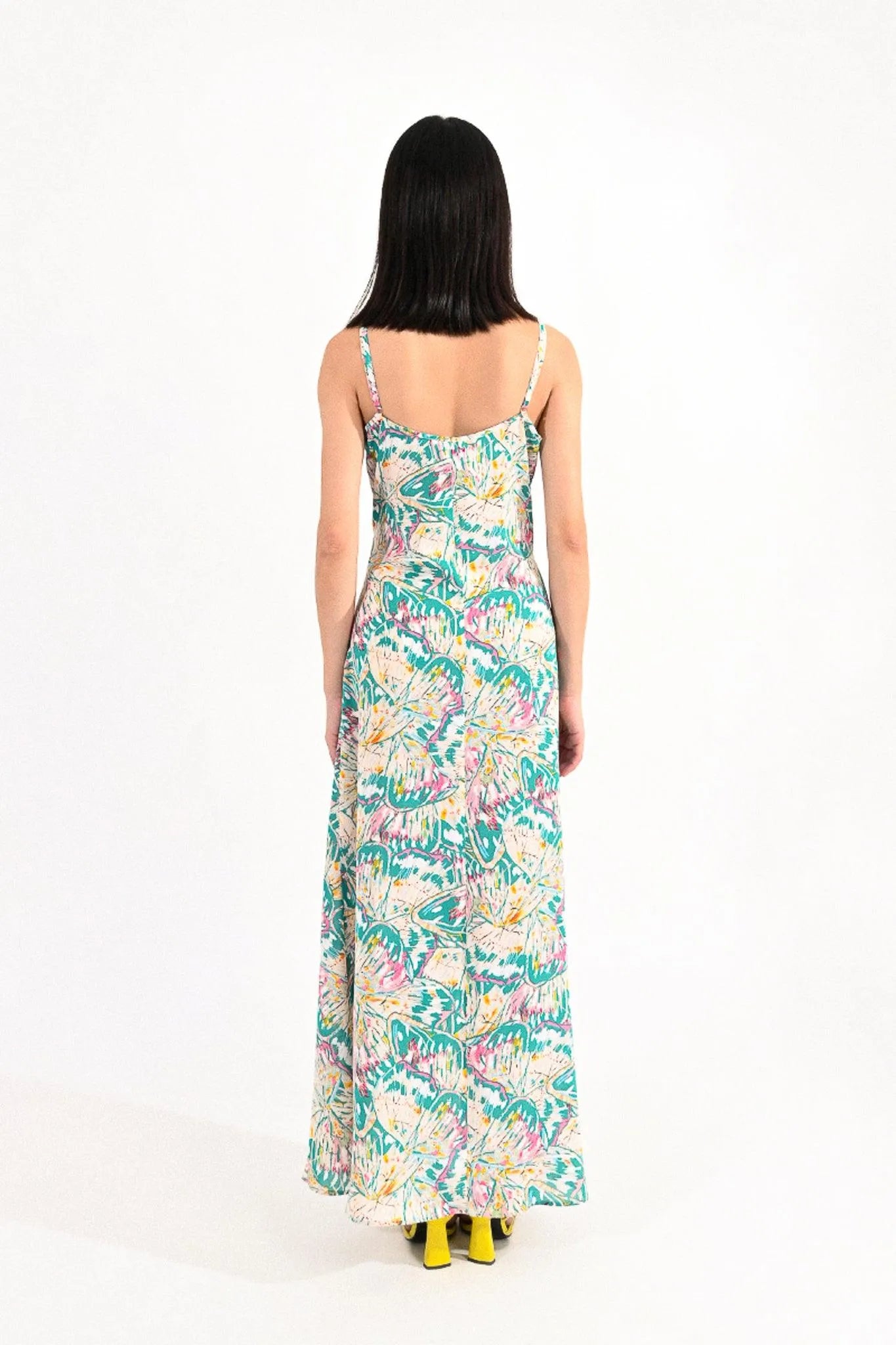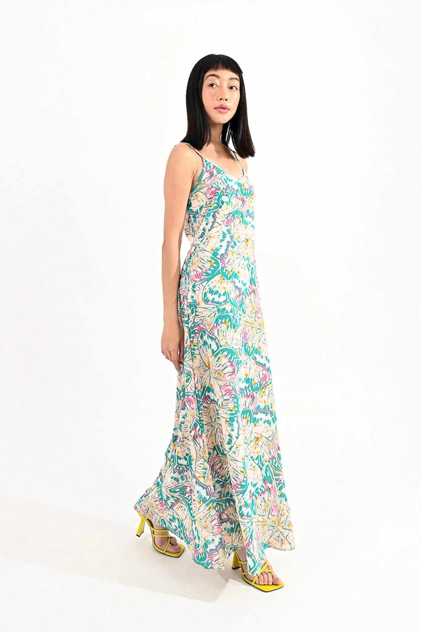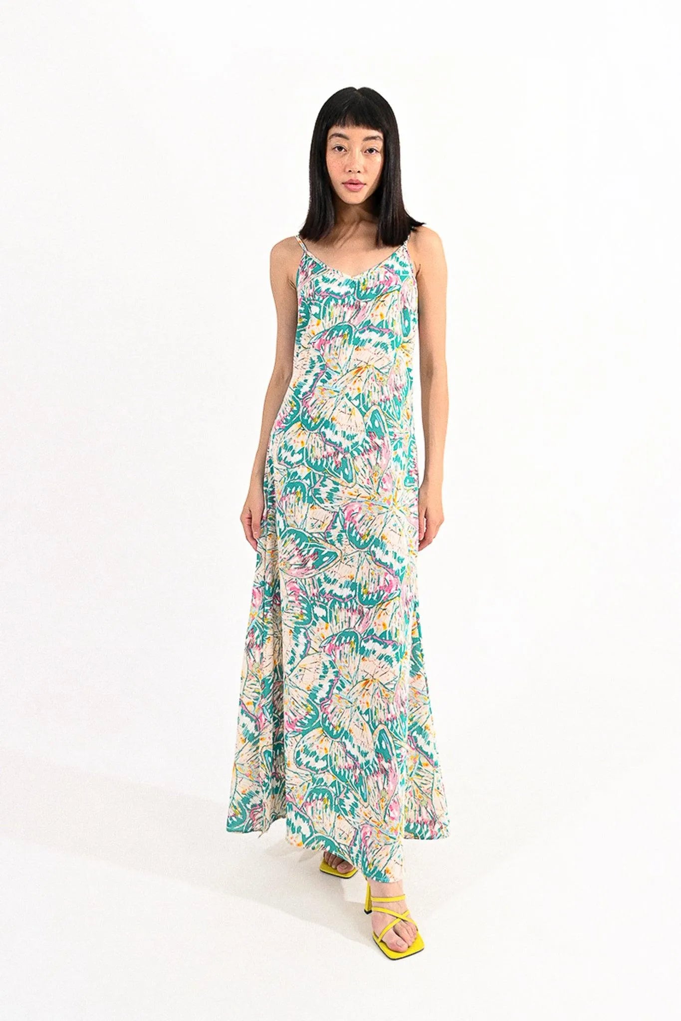 Vestido largo con estampado gráfico y tirantes finos. Largo: 128cm Talla S