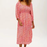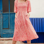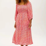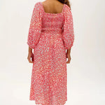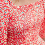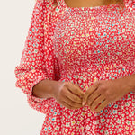 Vestido Sugarhill Raquel Midi Shirred Red Rainbow Daisies