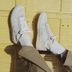 La gamuza está hecho a partir de la parte inferior de la piel de vacuno previamente cepillada para hacerla más suave y flexible. Procede de granjas del sur de Brasil (Rio Grande do Sul). Se curte en Brasil, respetando las normas REACH. Se presta especial atención al uso del agua dur gamuza el proceso de curtido. La gamuza también está recubierto con aceites hidrófugos sin PFC (compuestos químicos) para proteger las zapatillas de la lluvia ligera.